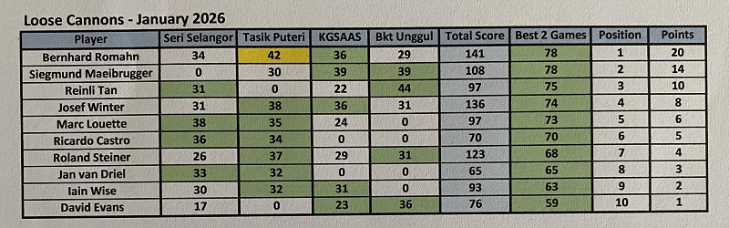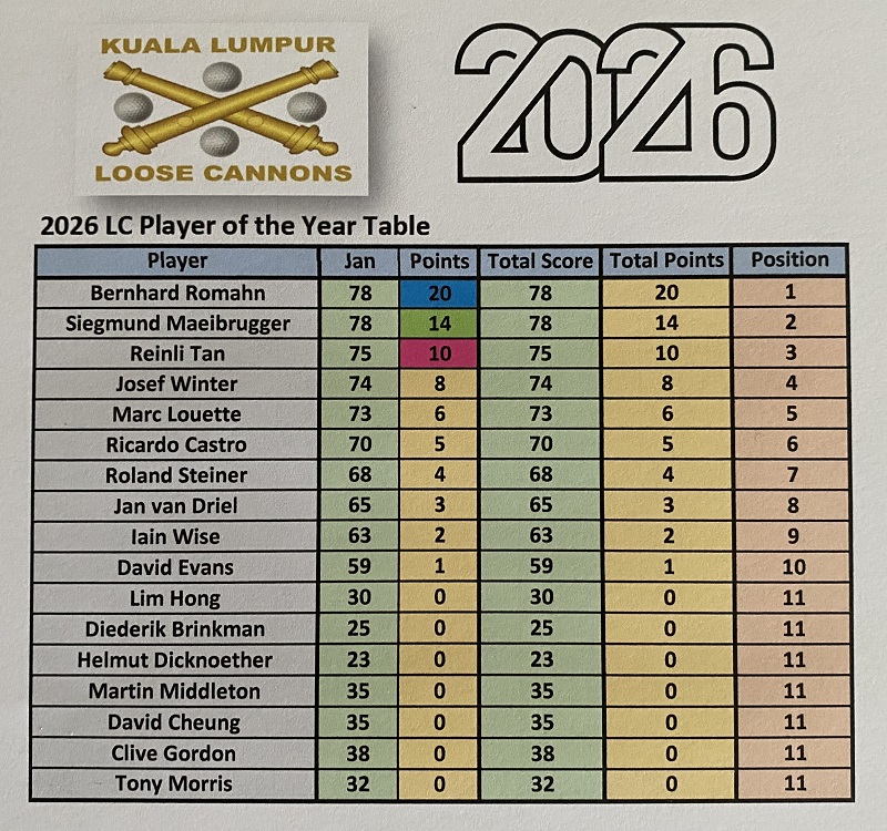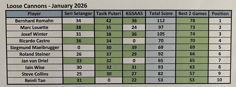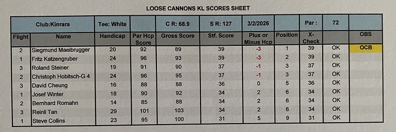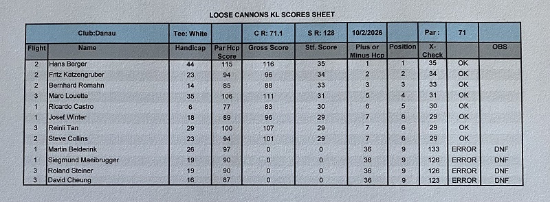 Christof, a guest of Siggi, played his fourth round with the Loose Cannons and posted a very respectable 37 Stableford points – clearly feeling right at home.