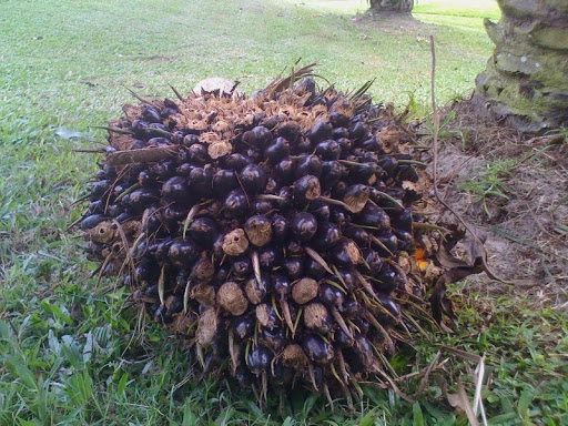 Also … spotted on the course today was what I thought was the leftovers from Hans Berger’s breakfast fruit platter …. but it was only some palm oil seeds!!