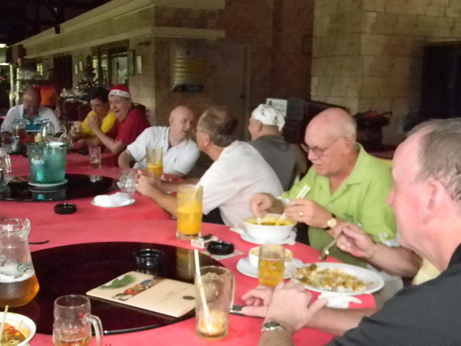 Lunch was taken at the Equatorial Restaurant, and very good it was too. The early arrivals had to wait over an hour for the final Cannons to arrive just before 14.00 hrs! We were joined by Mike Smith who brought along the Trophy to present to John – it turned out to be the December Trophy……