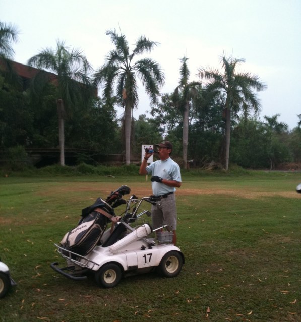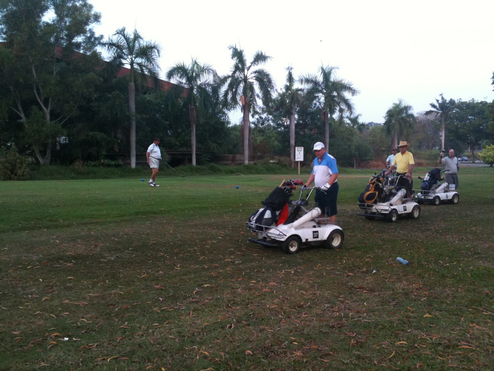 Port Klang Golf Resort is an occasional venue for Cannons, more as a novelty than anything else, and has given those of us who have played there in the past a number of humorous memories, When it’s wet it’s VERY wet and when dry, as hard as a bone. Who will ever forget the veritable marsh conditions a few years back and Klaus getting his trolley (a cunning folding German device of immense complexity but with a built in design flaw of narrow wheels) bogged down and retiring with swamp fever along with several others well before the end. And so it was, as always with Port Klang Golf Resort, with some trepidation that 11 Cannons found their way…..eventually…. to this seaside venue. Richard Moss who has been there many times before, inexplicably managing to get lost in North Port and arriving half an hour late. We were to be 12 but Erol pulled out overnight after consulting Google Maps and deciding that it was all too complicated and feared being lost forever in deepest Selangor. What a wimp.