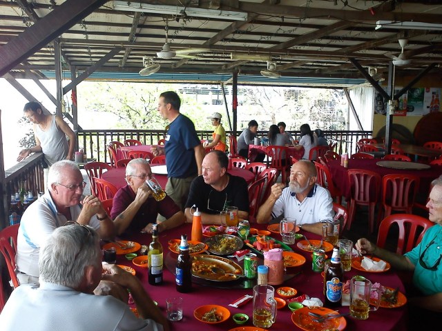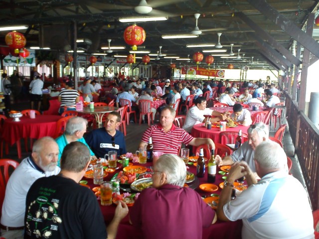 M&M was taken by all 11 of us at the Port Village seafood restaurant nearby. This place is very large and built on stilts over the sea and with nice breeze and “friendly” waiters a good time was had by all. The bill was a bit of a shock but with 12 large ones and 1 bottles of wine consumed, not entirely surprising. (3 bottles of wine were provided by diners themselves!!).