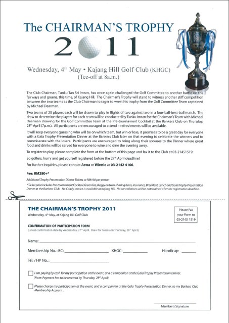 Golf next Tuesday 3rd May will be at NILAI SPRINGS.