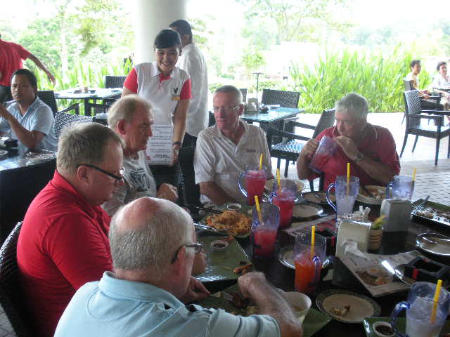 With the last minute withdrawal of Erol {(some urgent business has just come up!) code perhaps???} 19 LC’s teed it up at Rahman Putra under a cloudless sky with just the slightest breeze to help cool the otherwise hot conditions. We played Hills and the course was in excellent shape if a little soft in places, but spoilt a little by uncut tee boxes but it did have very nice greens. But there was much more to the morning than the condition of the course.