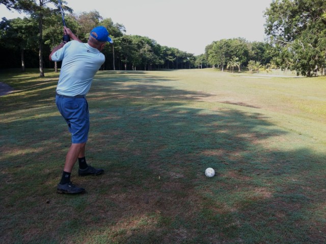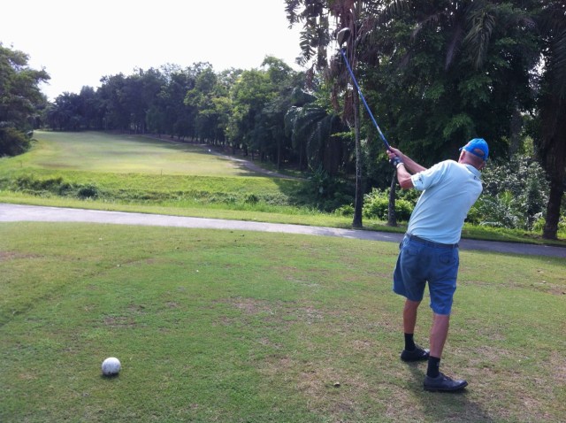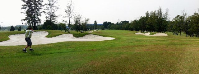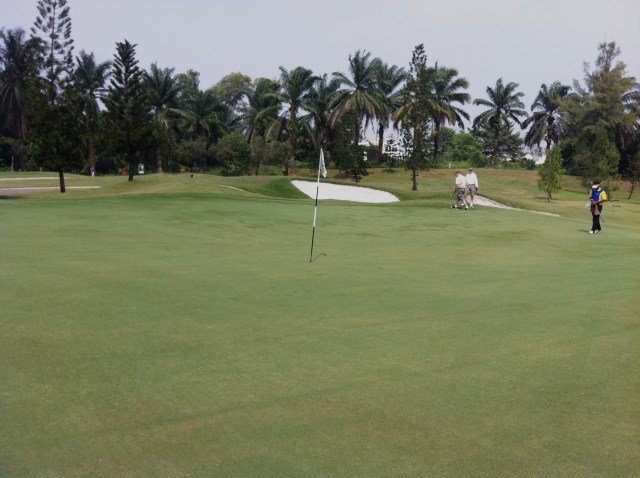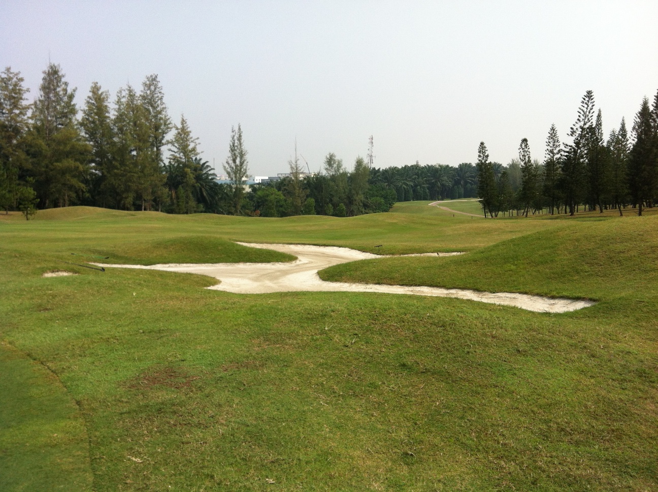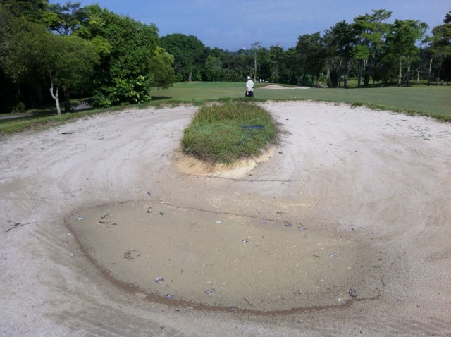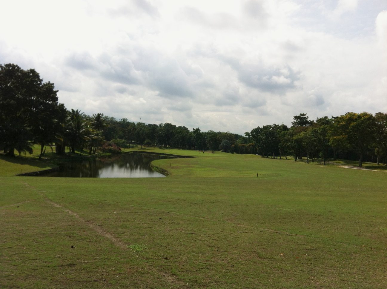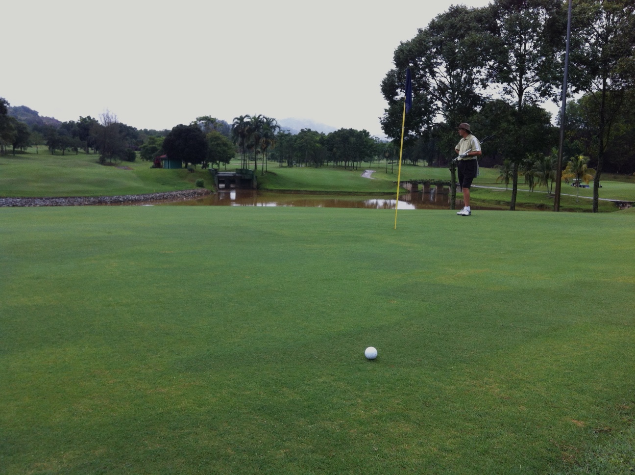 The Valley course at Glenmarie is a challenging and picturesque track which was completely renovated by Parslow Golf 3 years ago. It should be in fine if not pristine condition but the opposite was true; the only exception being the greens which were large, true and fast. But the fairways and tee boxes……oh dear. They were a disgrace with large bare areas, a lot of fungus evident and great tracts that had been hollow tined and heavily sanded. Weed infestation was rampant throughout the fairways and the rough. The bunkers were basically OK but earlier players had left their mark….bloody great foot prints in the side slopes that you could had buried a cat in. This of course isn’t the fault of the course management; it’s a reflection of the extremely poor behaviour of a large number of Malaysian golfers I’m afraid.