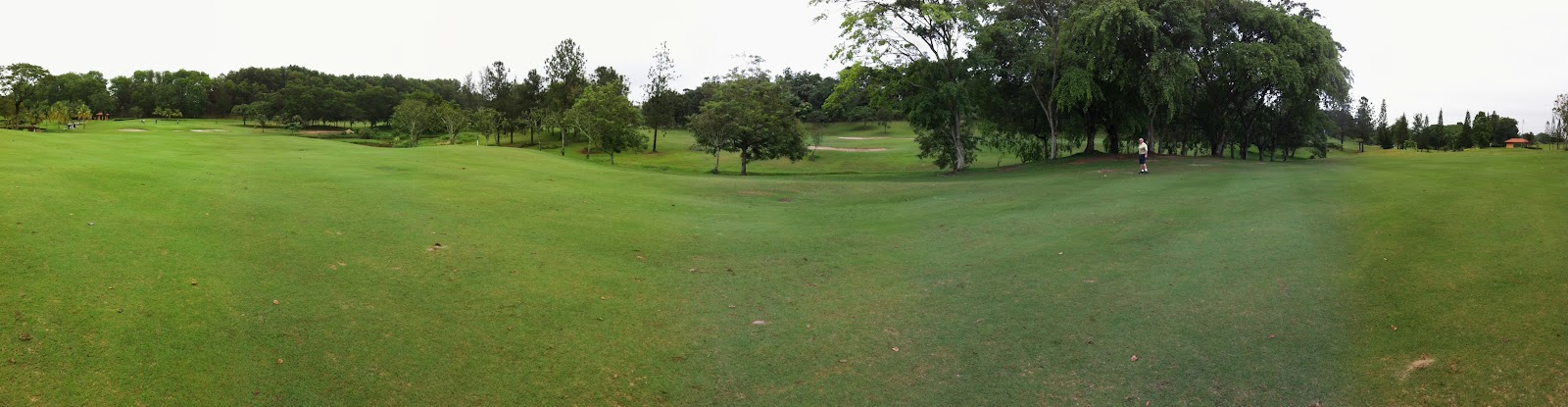 A beautiful panorama on the last hole with Tony Morris waiting till the green clears