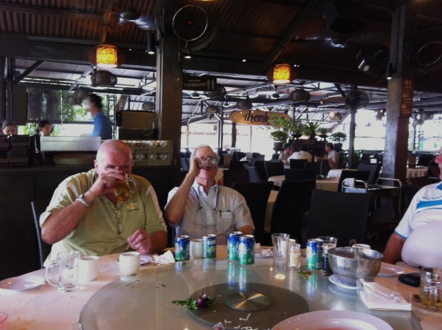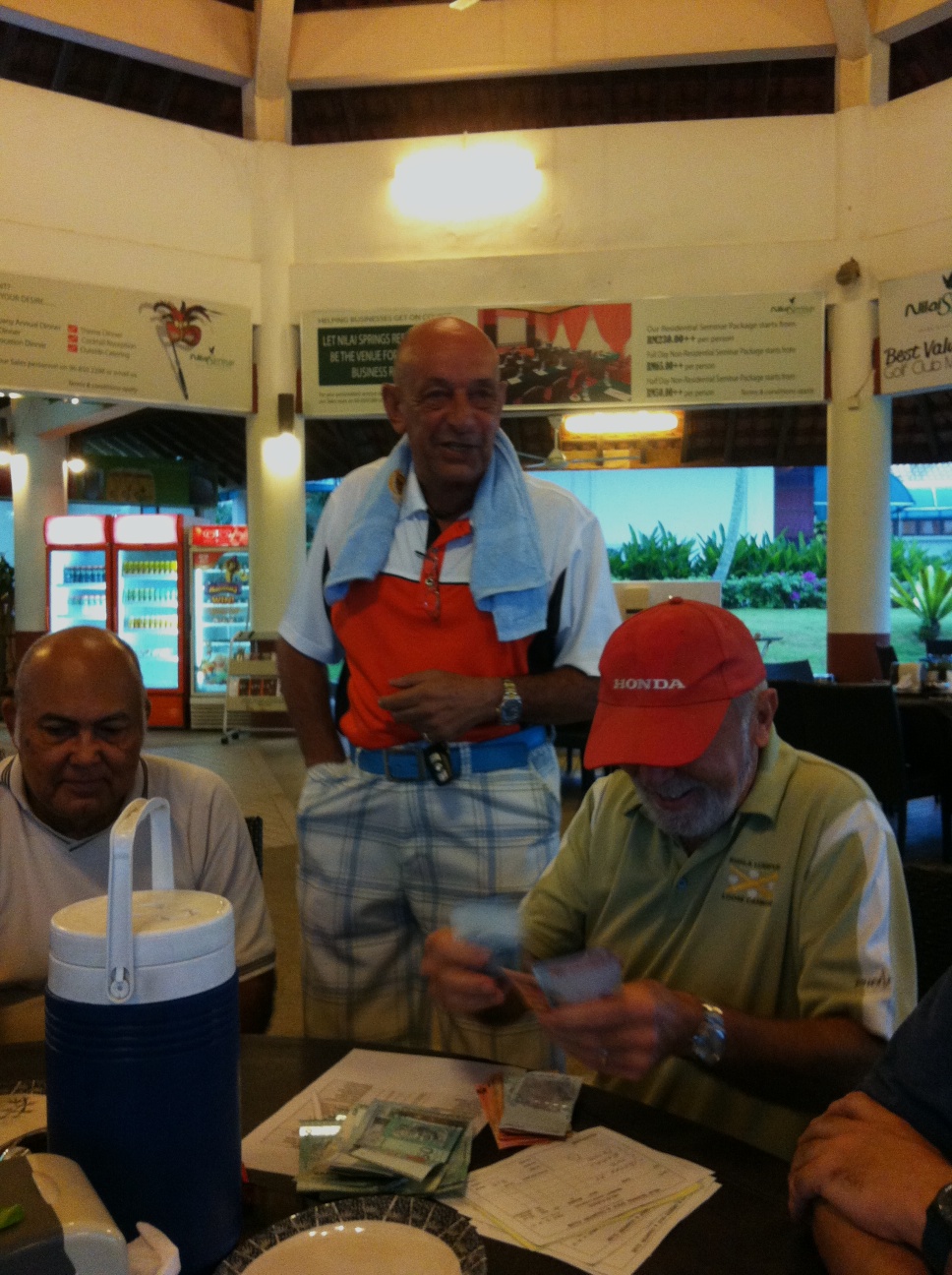 All 23 of us enjoyed lunch at the clubhouse where the food was excellent and a nice change from last weeks rip off. Plenty of amber nectar was put away and we were only just short of the amount needed for the bill. A whip round of RM10 per head left us with RM85 for the kitty which has been depleted in recent weeks from subsidising some expensive blow outs. We now have RM1192 in hand.