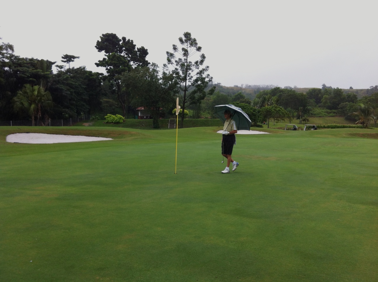 Yours truly held back from registering until play seemed probable but the storm was short lived and we were able to make our way to the starters hut at 8:30 and we were off by 8:45, all from the same tee box as the other tee was occupied by some very slow flights. We played the Alam Shah and Presidents nines.