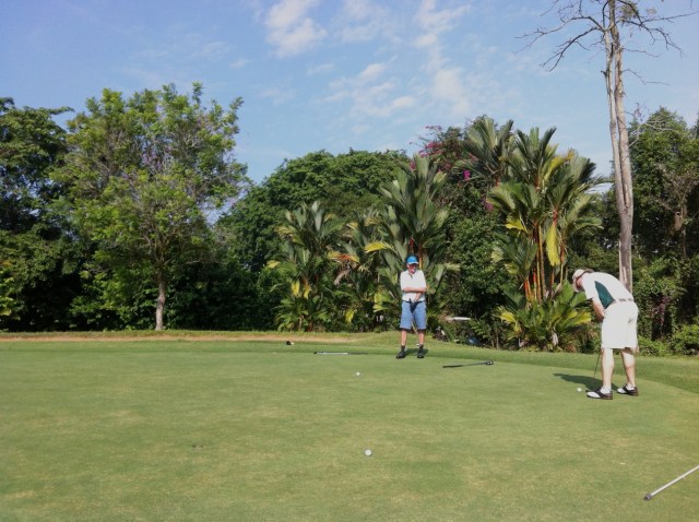 Luckily the greens were exceedingly slow otherwise this putt of mine would have rolled past the hole and down the slope towards the water.