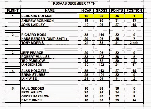 The winner was Bernard Romahn with an excellent round of 80 for 46 points. Cut only 10 lah….Second on count back, from Iain Wise was Tony Morris with 88 for 41 points. Cut 1…