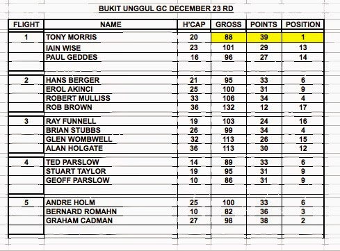 MONDAY 23rd December we will be playing the Xmas game at Bukit Unggul. 5 flights have been booked.