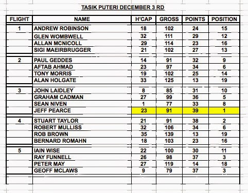 Next week we are playing at Impian GC. 5 Flights have been booked. Costs, finally confirmed, will be 150 RM. Buffet lunch included as part of promo offer. I think OK, especially after the day’s previous Xmas lunch.!! Also includes 1 compulsory Caddy per flight. Additional caddies at own expense.