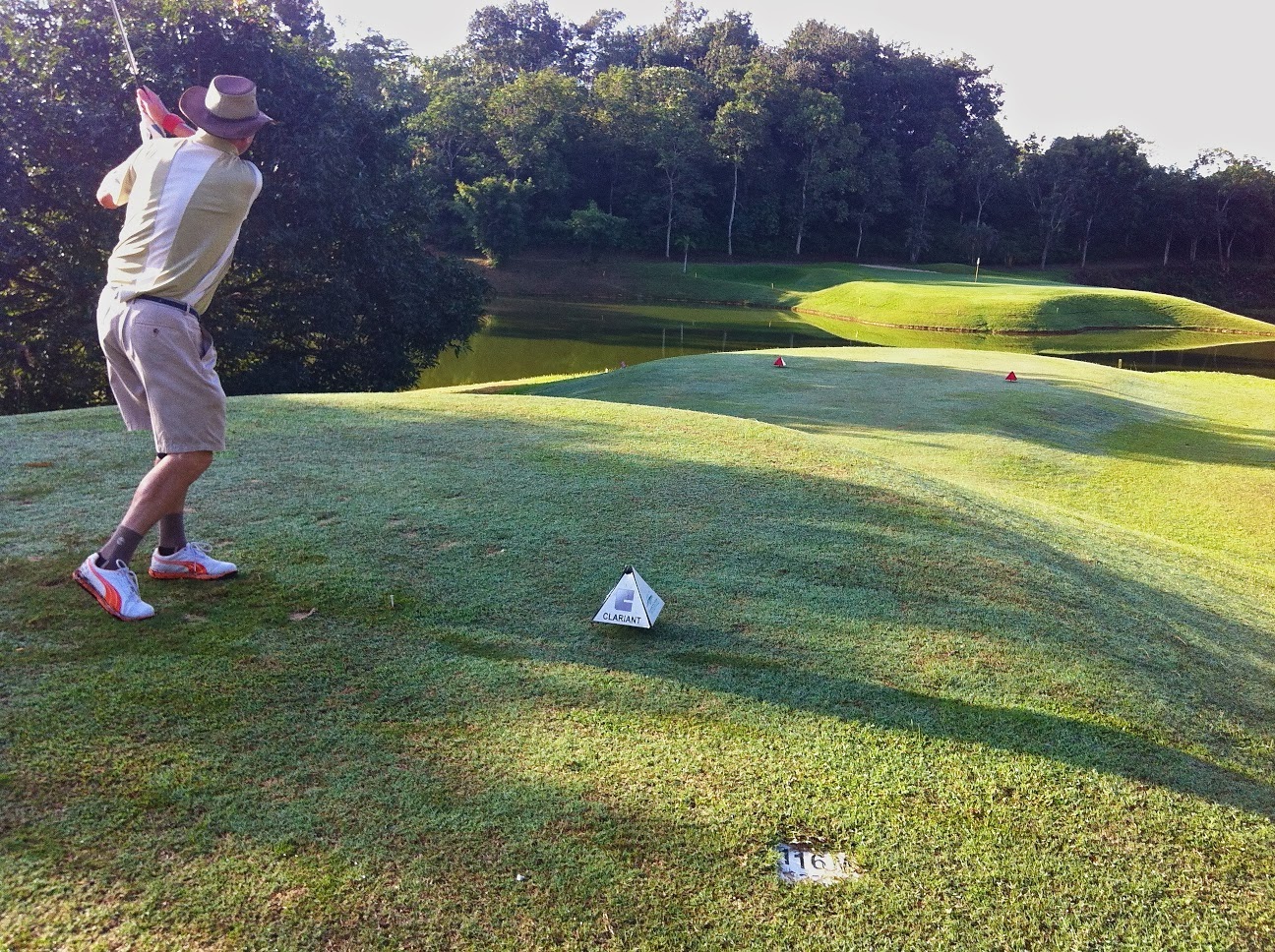 Bukit Kemuning was drier than expected, only a few soft patches, and played well. The greens were in good condition and were even paced. Pleasant weather conditions which warmed up later, resulted in a good morning’s golf.