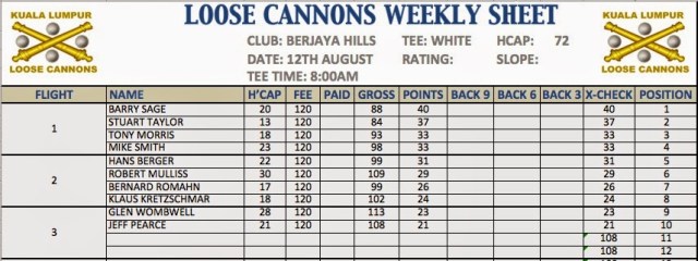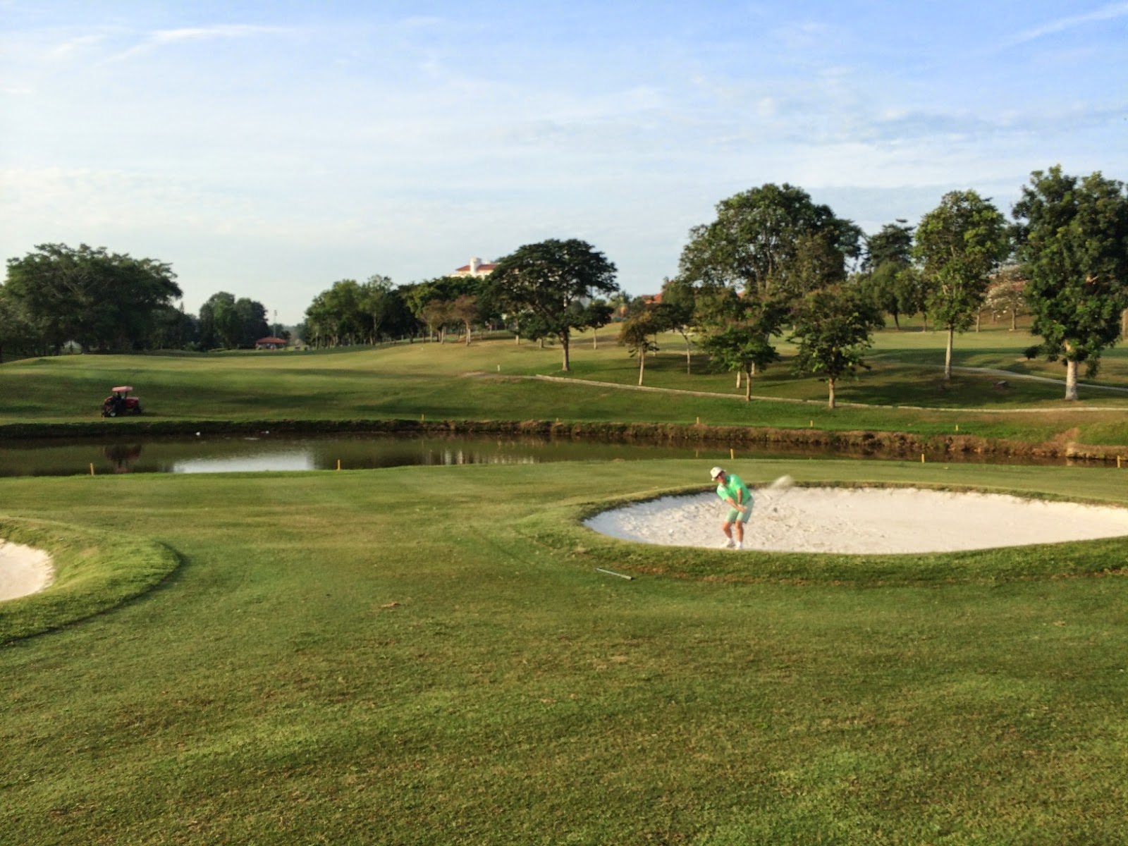 We had 15 players this morning at Tasik Puteri and we got off to an early start at 5 mins to 8 on two nines (Puteri and Putera). Course conditions were good and the greens quite fast. We made good time round the course but unfortunately due to heavy rain the siren went and suspended play with most players having a few holes to play. Our 4 ball luckily managed to finish the 18th albeit in heavy rain.