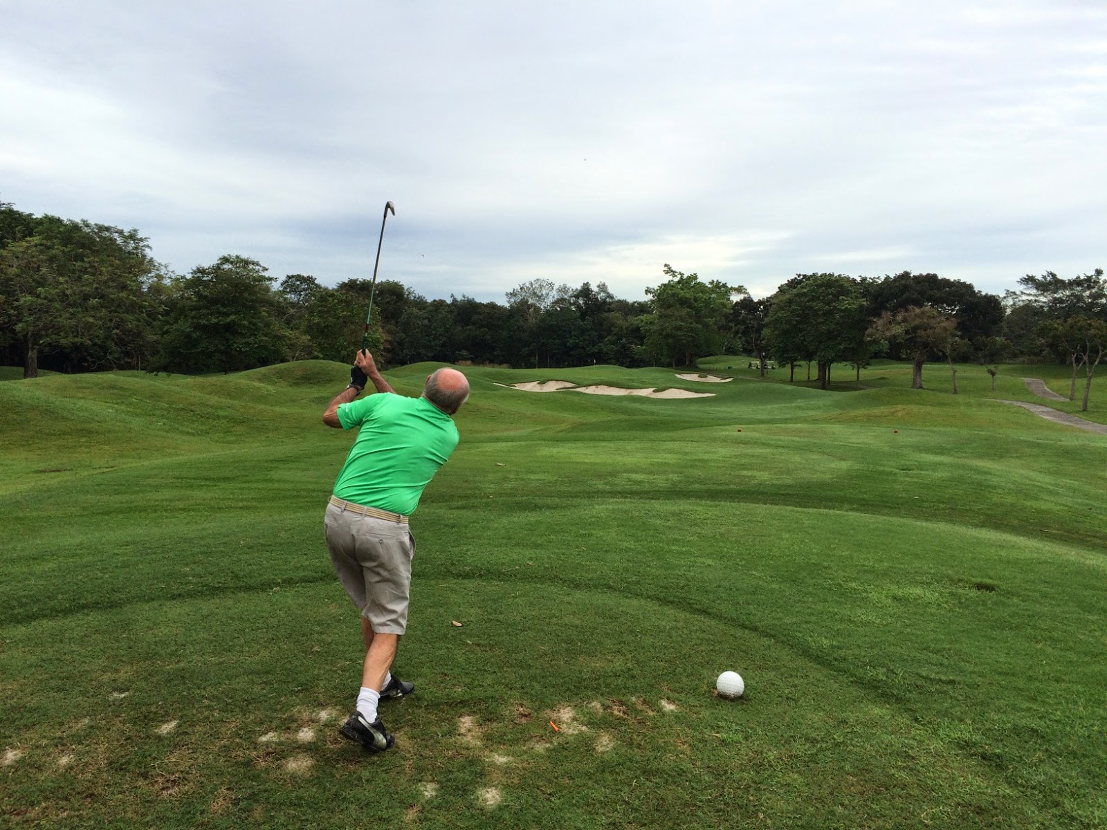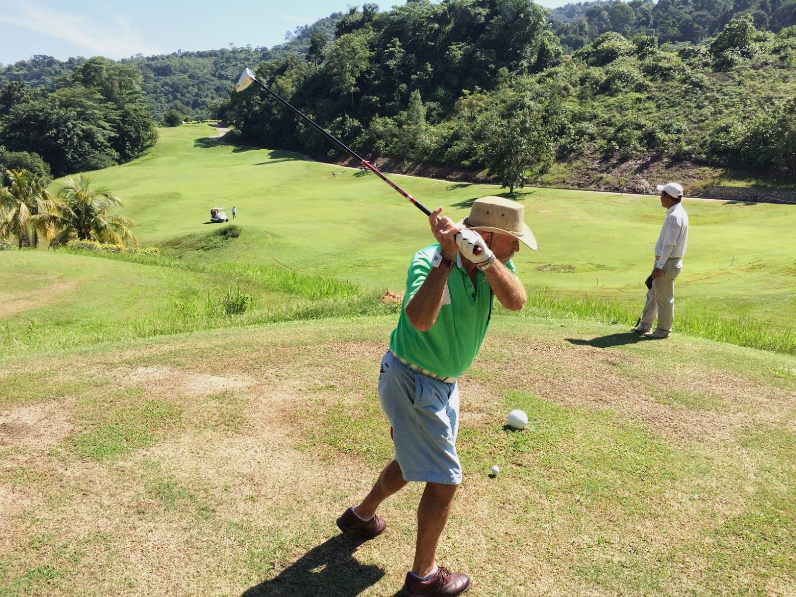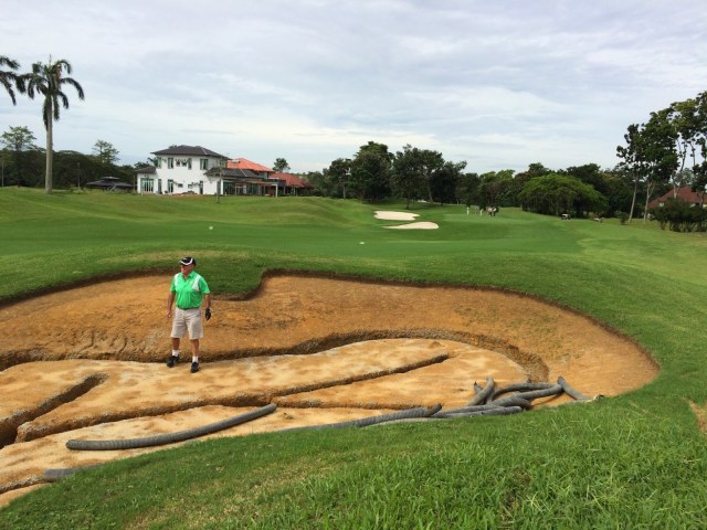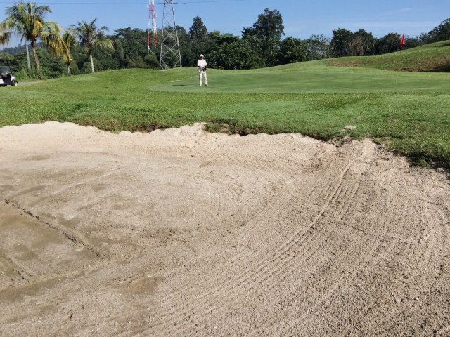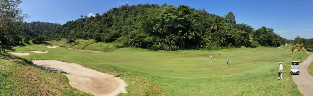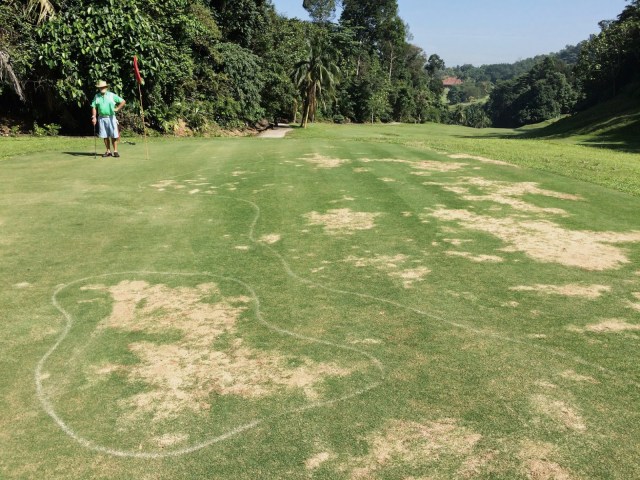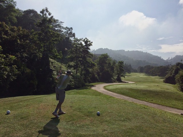 It was a rather wet and soggy course today at Rahman Putra making it even harder work than usual to reach the green. The greens however were in good shape although a little slow. Weather was good and we got off rather painlessly at around 8:00am from two tee boxes on the Hills 9’s.