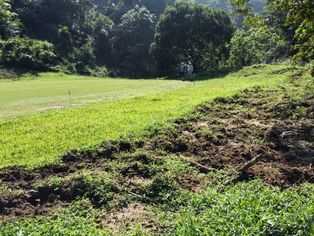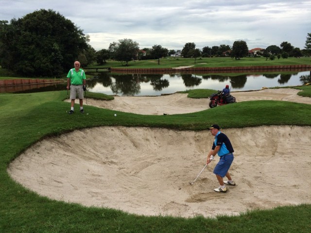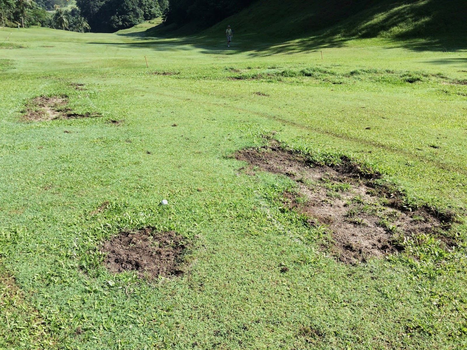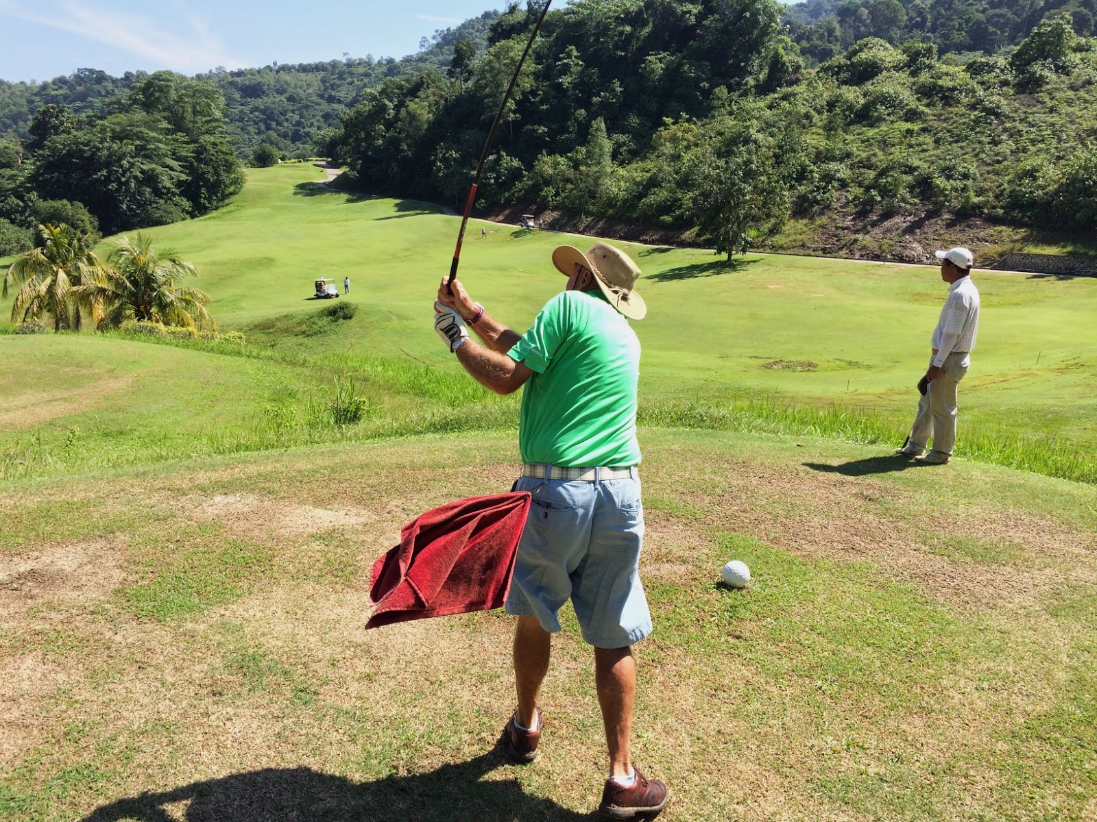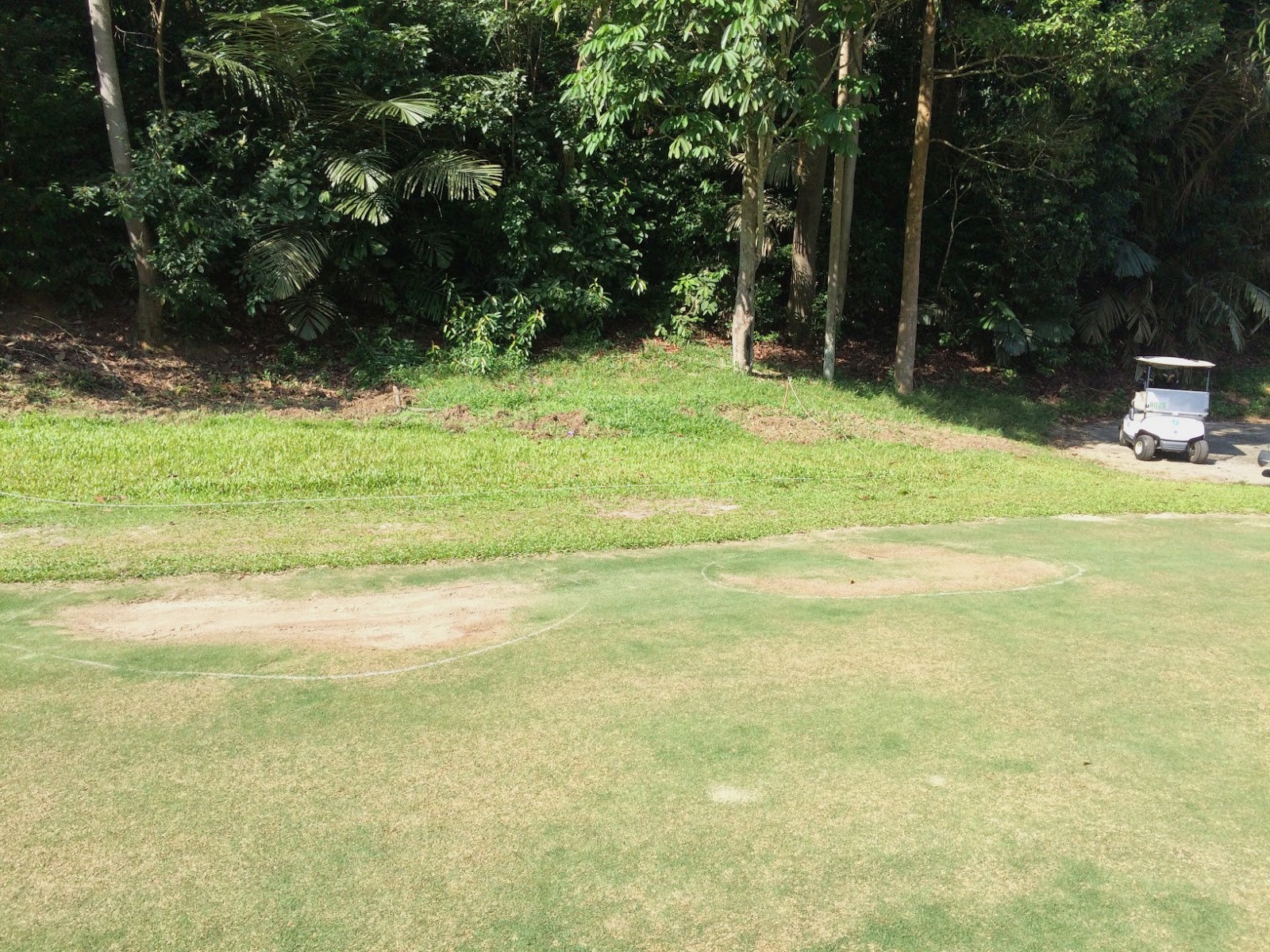 It was a rather wet and soggy course today at Rahman Putra making it even harder work than usual to reach the green. The greens however were in good shape although a little slow. Weather was good and we got off rather painlessly at around 8:00am from two tee boxes on the Hills 9’s.