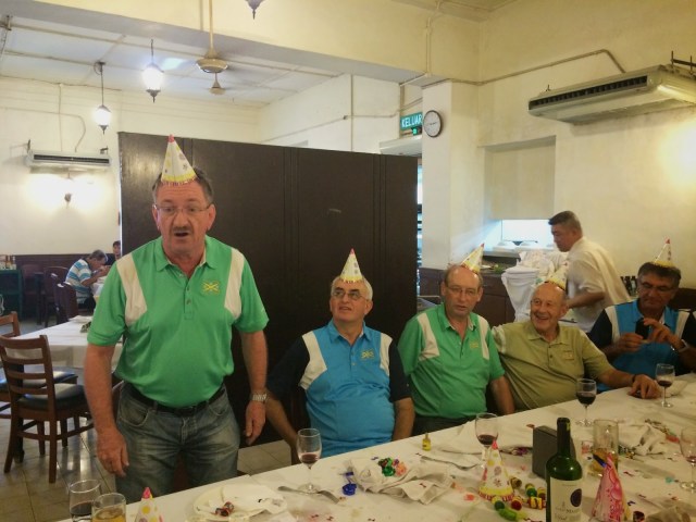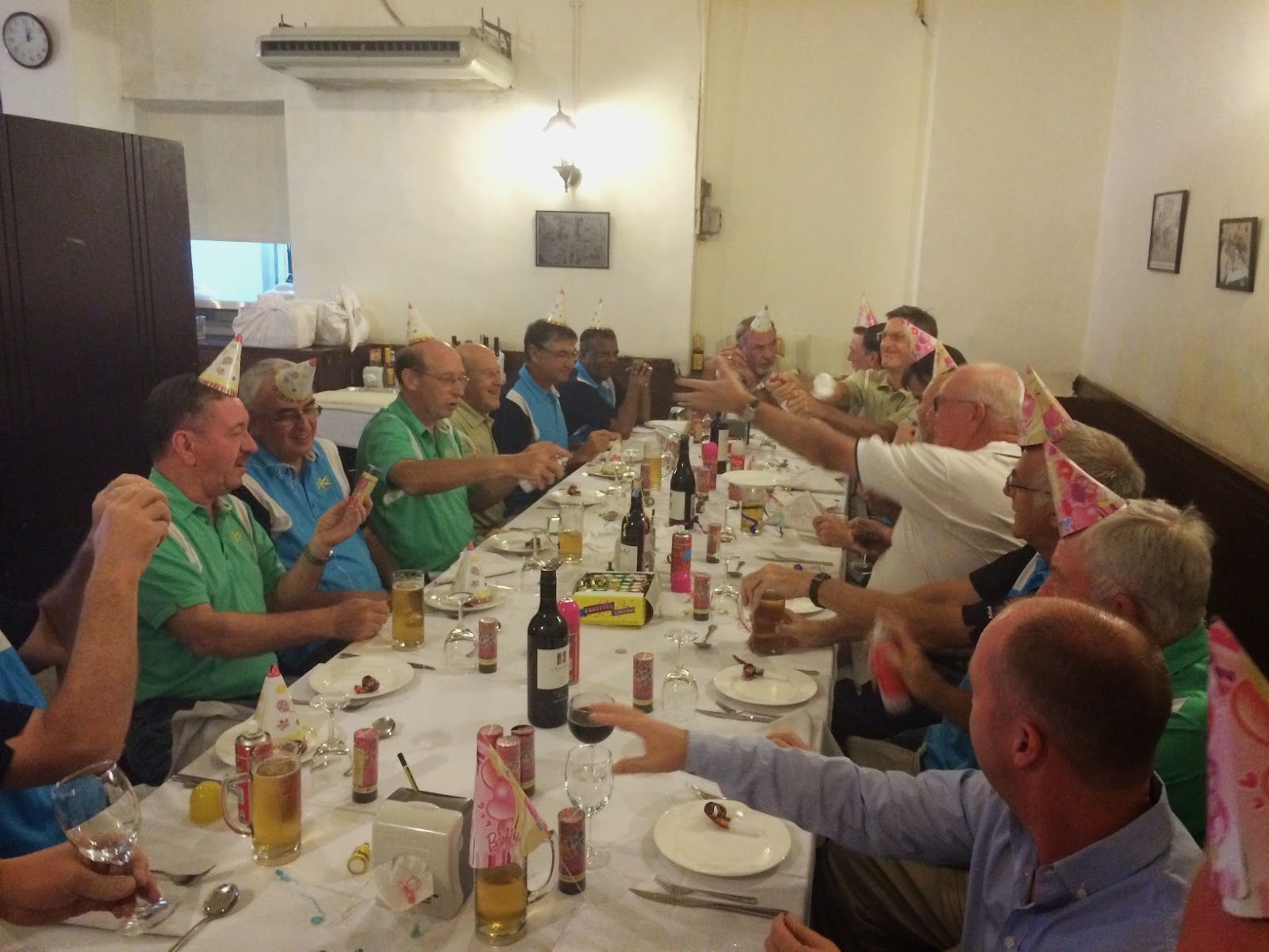 After the game 12 of us made our way to the Heng Hin Restaurant close-by to the club for a rather frustrating meal with slow/bad service and small portions leaving some Cannons rather light on the first few dishes that were scoffed by the wolves at the other end of the table. Hans Berger kindly sponsored the drinks today to celebrate his recent 200th game with Loose Cannons …. thanks very much Hans.