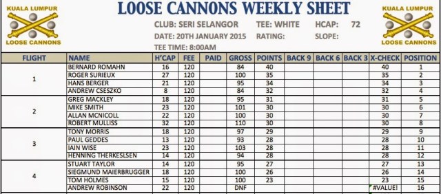 The January Trophy Game was held at Amverton Cove with 4 flights (15 players) teeing off from two tee boxes at 8:00am. Weather was very good and the course was in great shape with the recent rain improving the usual dry state that this course exhibits. The greens were excellent.