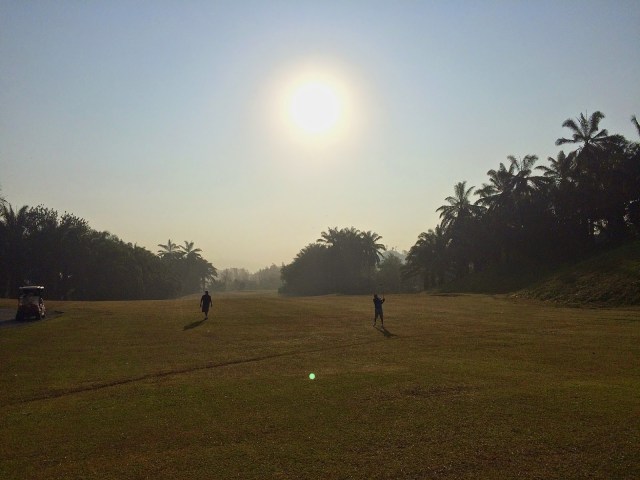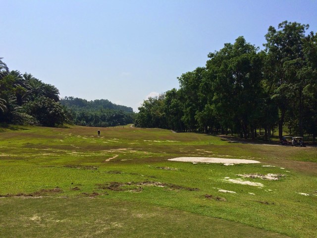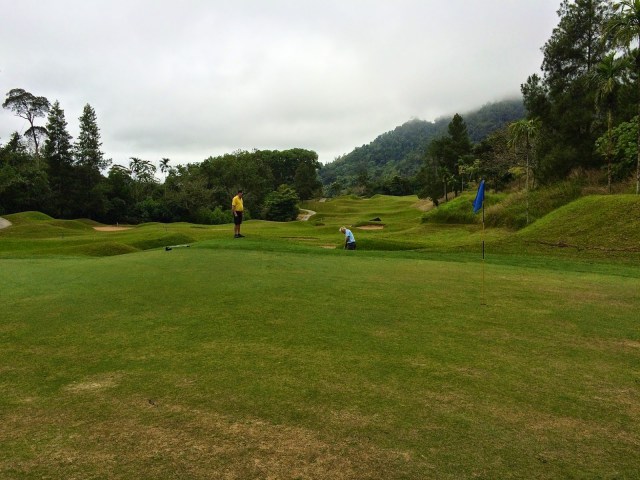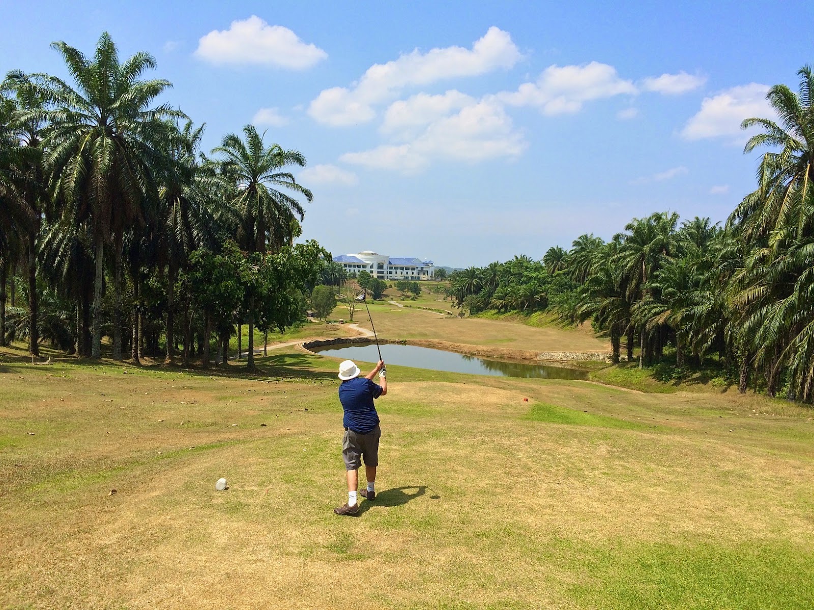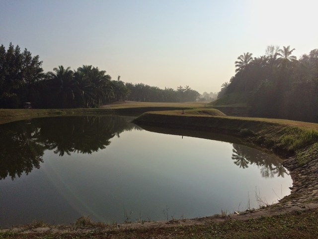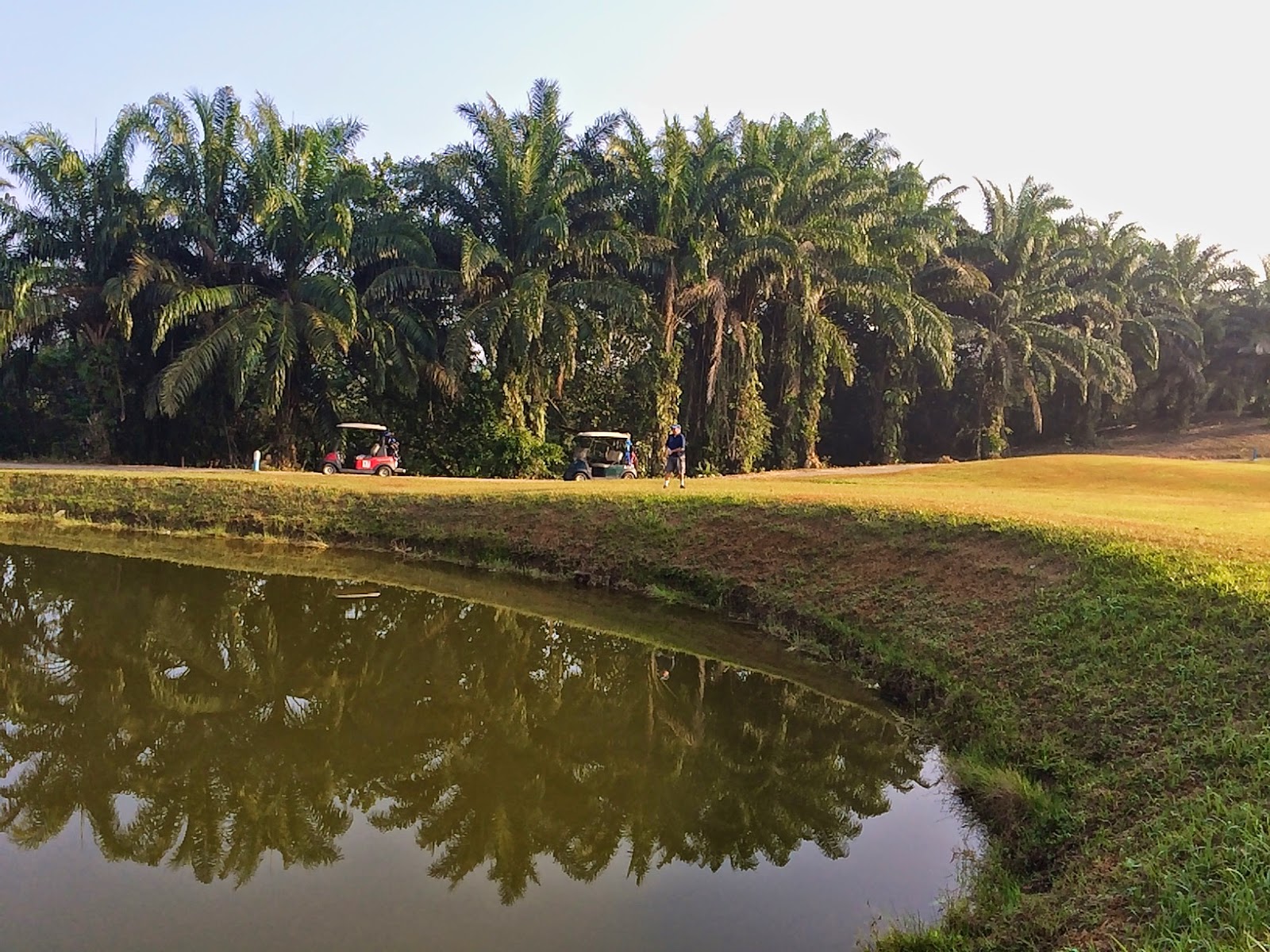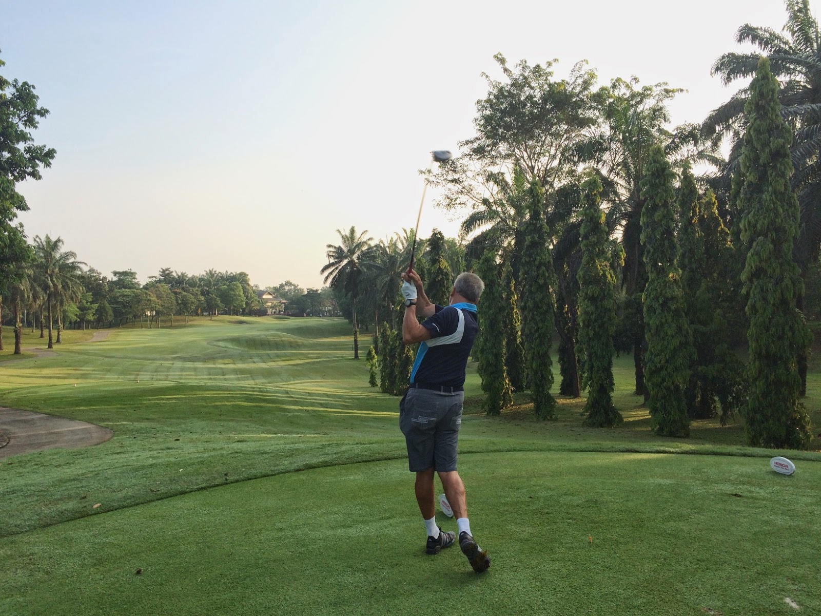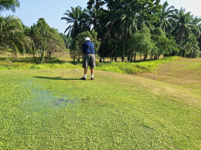 We all got off on 2 separate tee boxes at just before 8:00am and the first 9 holes were relatively cool, but got progressively hotter as the morning went on. The course was badly cut up by wild boars and the green surrounds were in pretty bad shape as were the bunkers. You really had to keep on the fairway as there was no relief by slicing or drawing onto other fairways – each hole was individually carved through the palm oil plantations so once of the fairway your ball was well and truly gone.