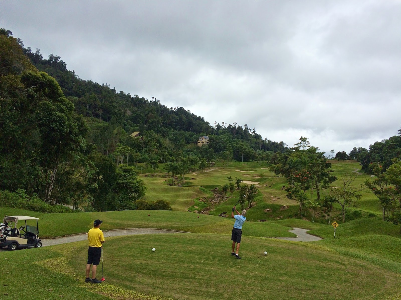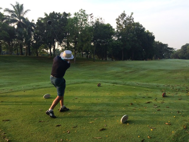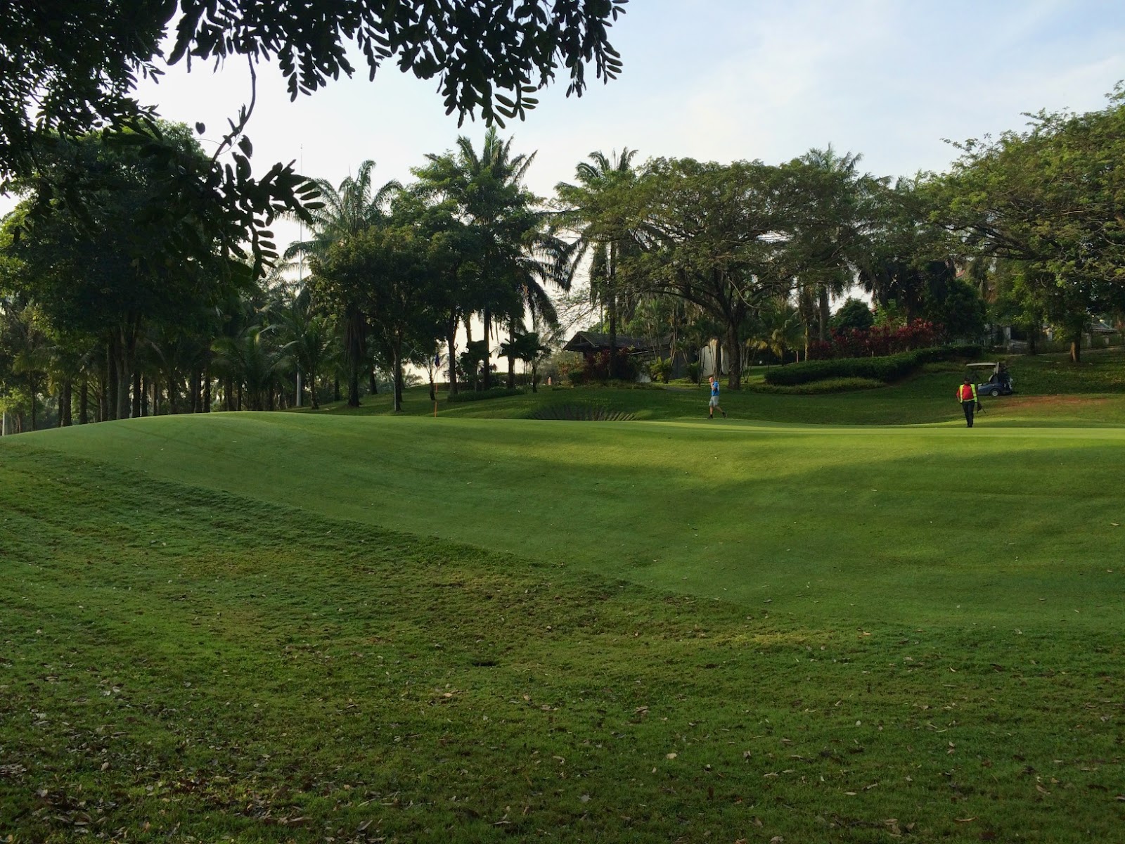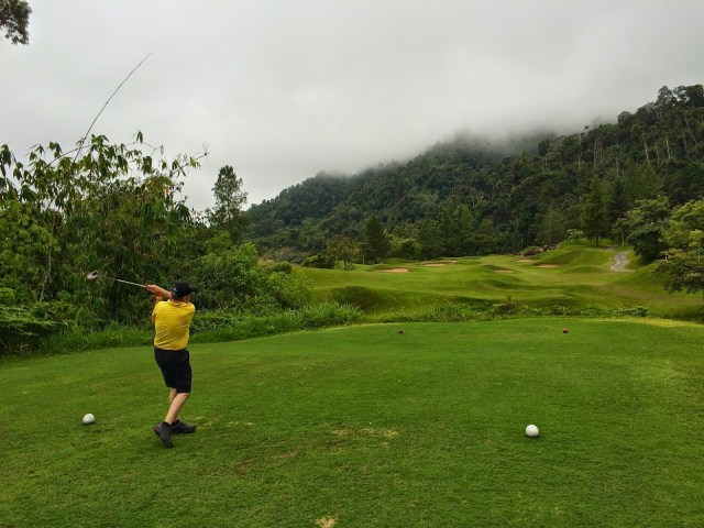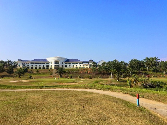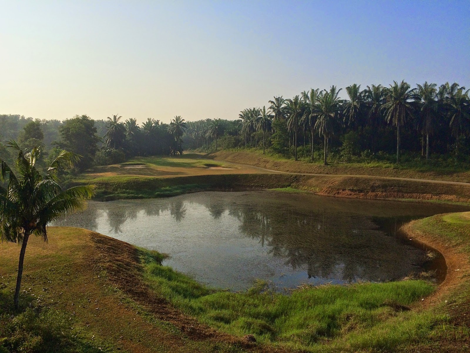 We all got off on 2 separate tee boxes at just before 8:00am and the first 9 holes were relatively cool, but got progressively hotter as the morning went on. The course was badly cut up by wild boars and the green surrounds were in pretty bad shape as were the bunkers. You really had to keep on the fairway as there was no relief by slicing or drawing onto other fairways – each hole was individually carved through the palm oil plantations so once of the fairway your ball was well and truly gone.