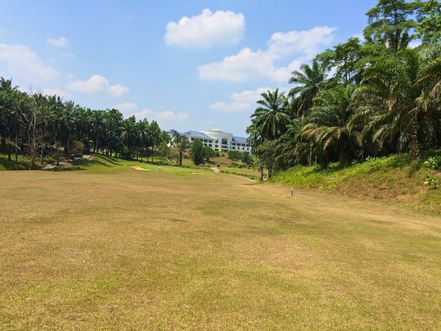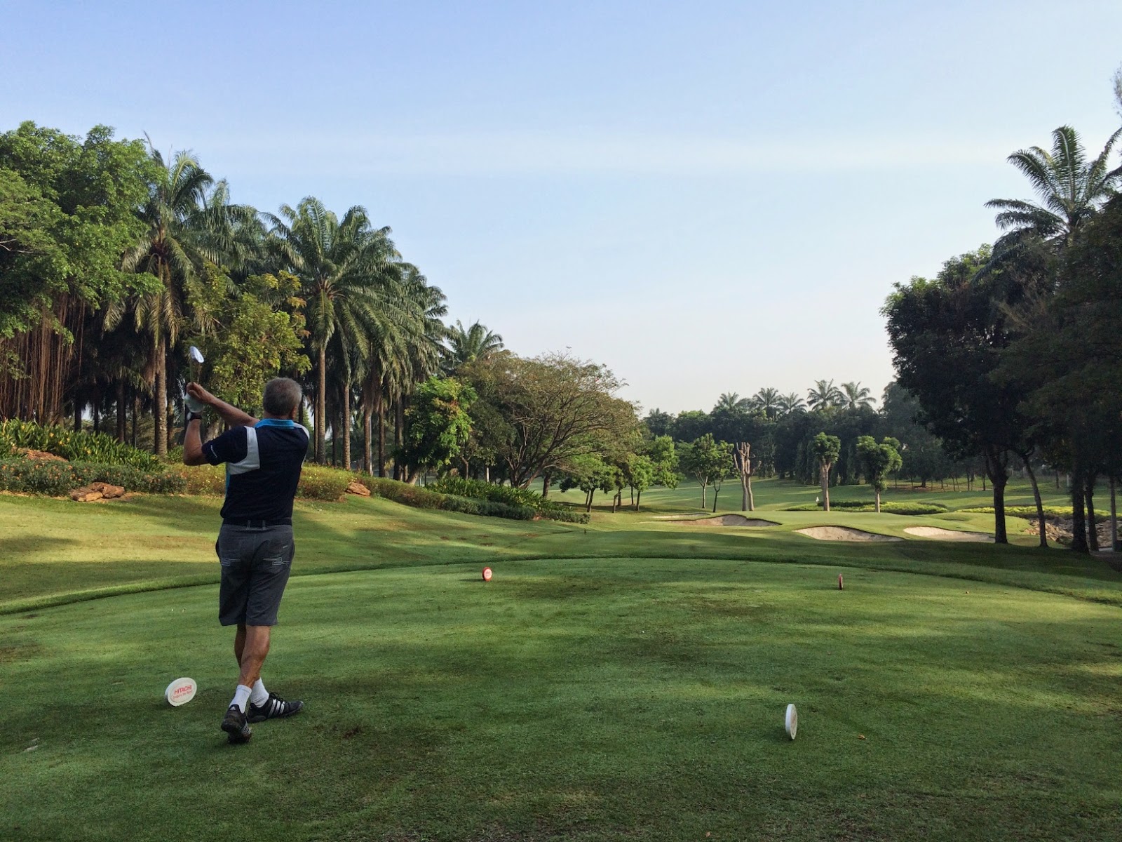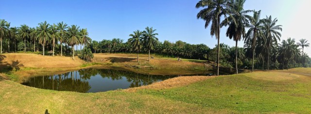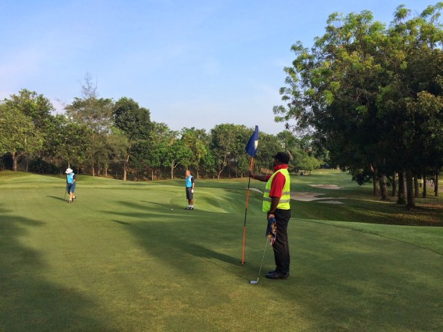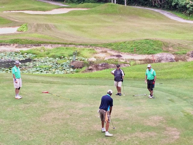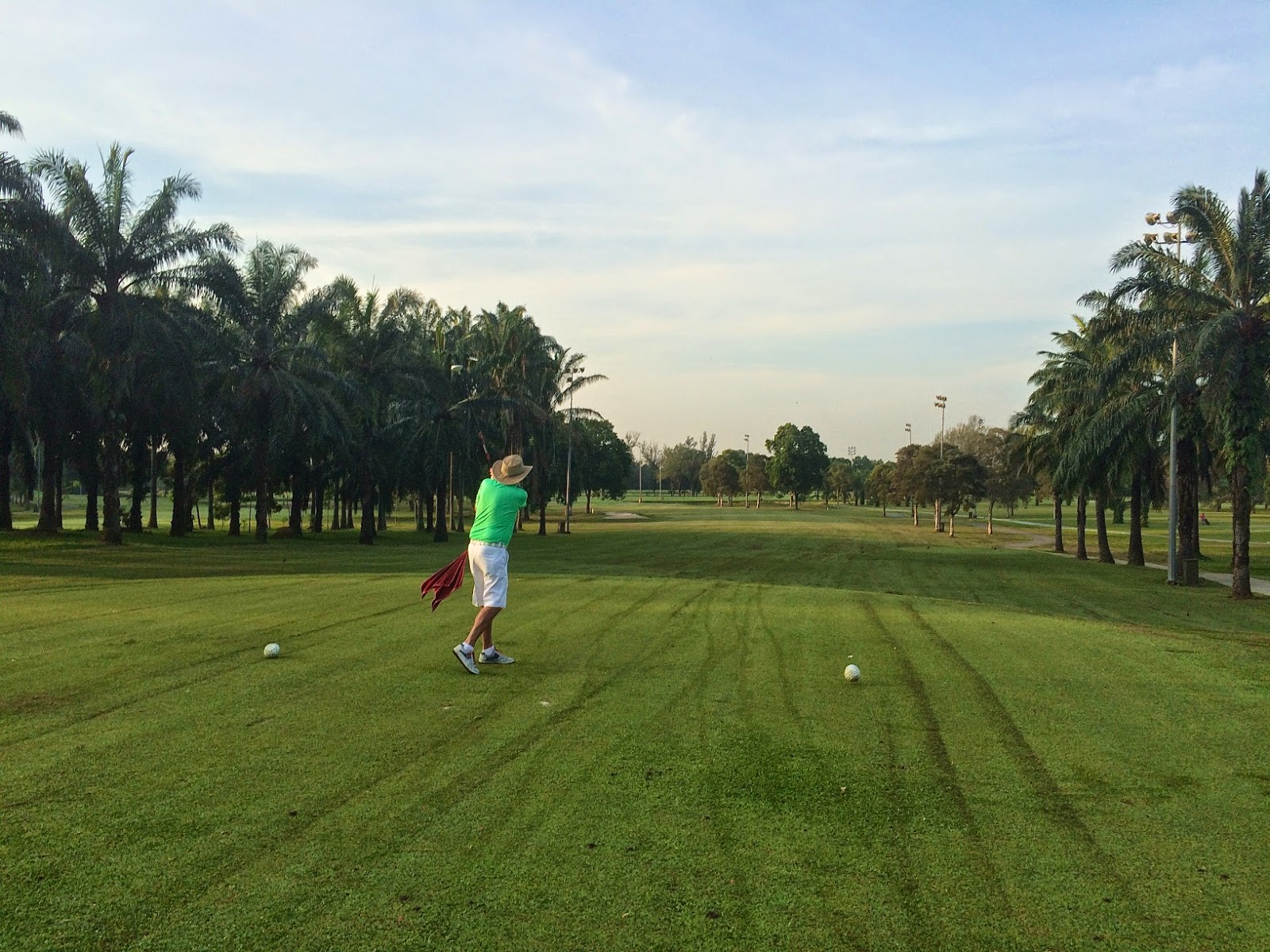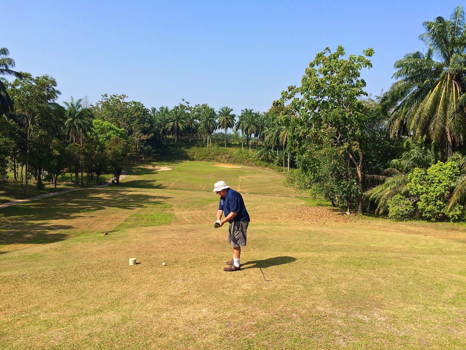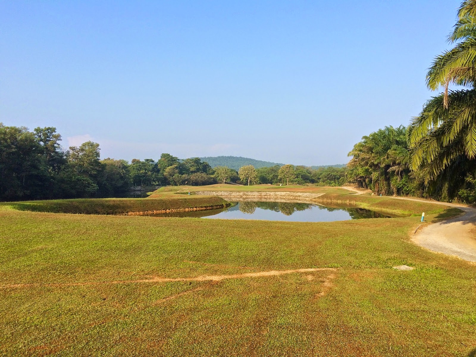 We all got off on 2 separate tee boxes at just before 8:00am and the first 9 holes were relatively cool, but got progressively hotter as the morning went on. The course was badly cut up by wild boars and the green surrounds were in pretty bad shape as were the bunkers. You really had to keep on the fairway as there was no relief by slicing or drawing onto other fairways – each hole was individually carved through the palm oil plantations so once of the fairway your ball was well and truly gone.