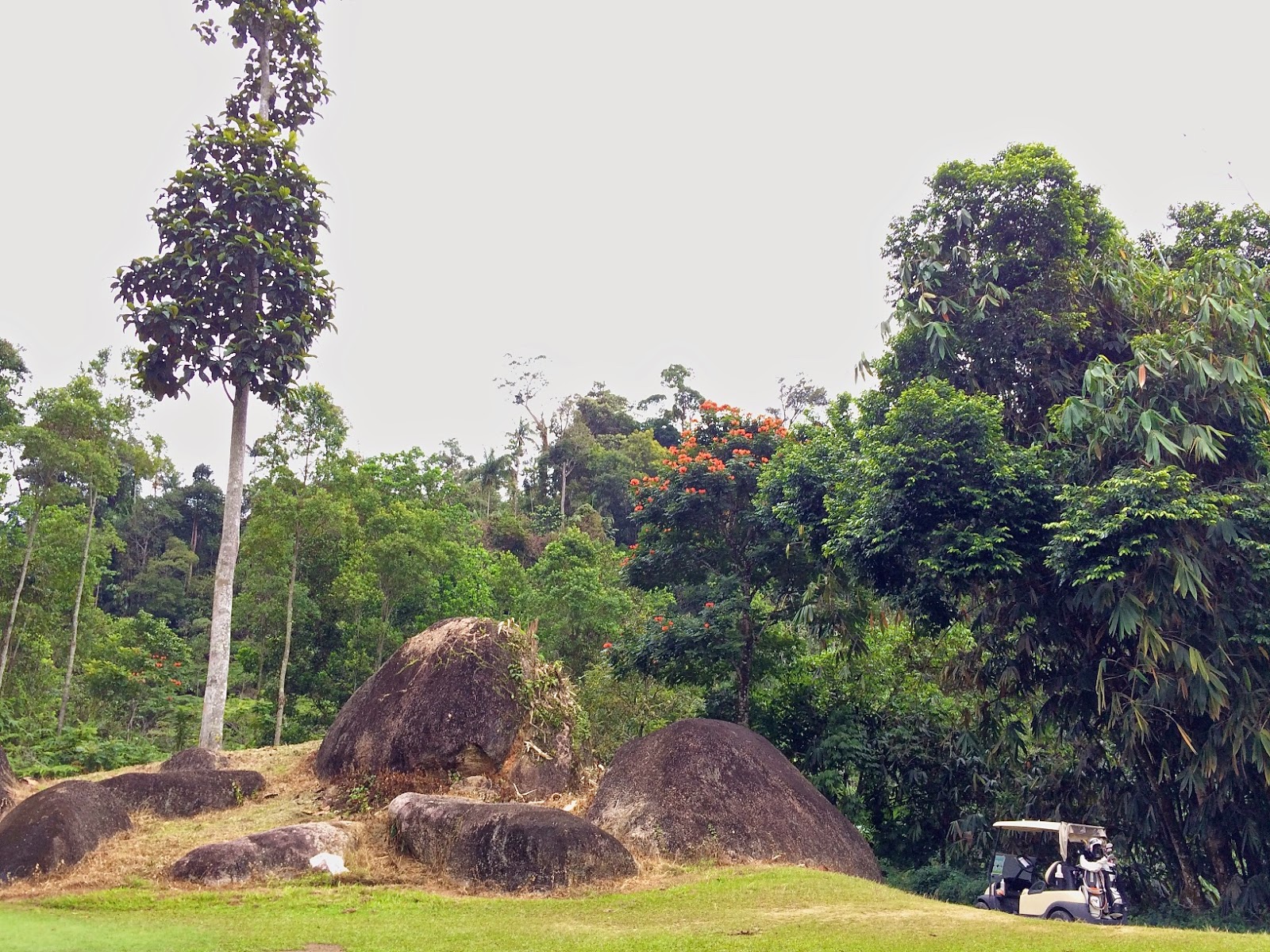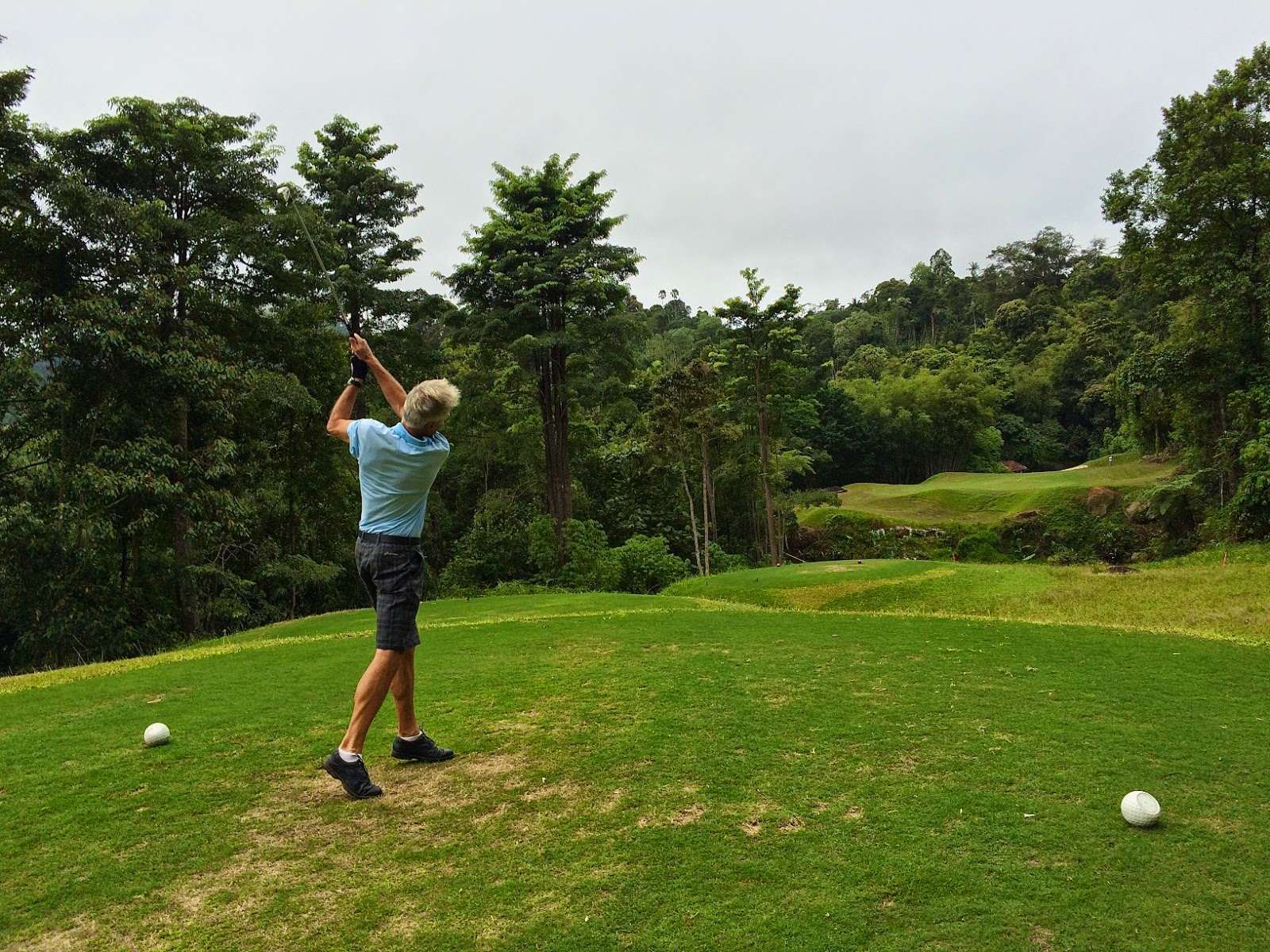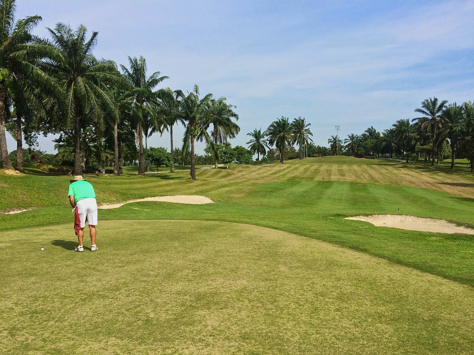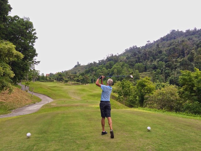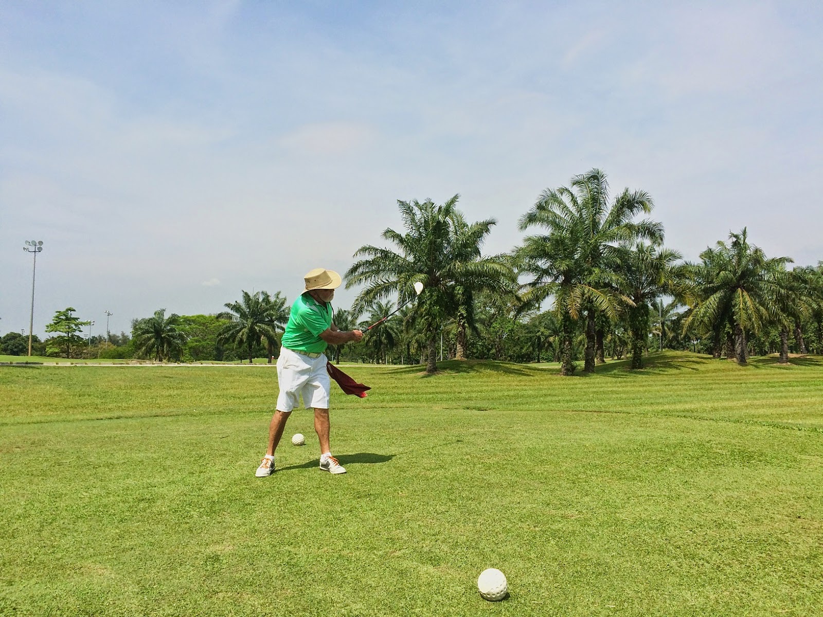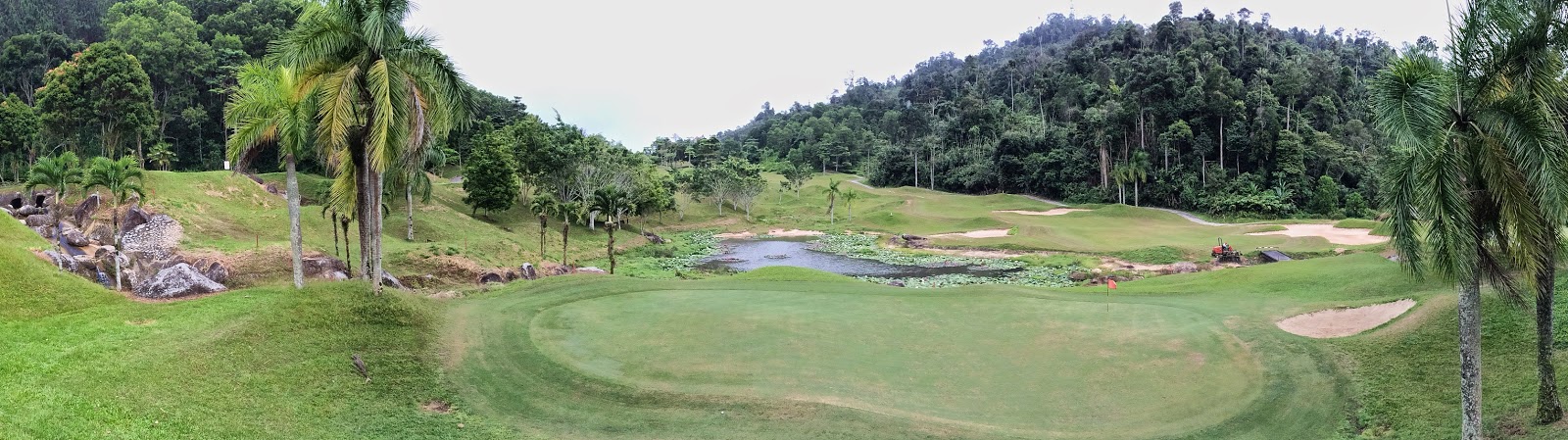 We all got off on 2 separate tee boxes at just before 8:00am and the first 9 holes were relatively cool, but got progressively hotter as the morning went on. The course was badly cut up by wild boars and the green surrounds were in pretty bad shape as were the bunkers. You really had to keep on the fairway as there was no relief by slicing or drawing onto other fairways – each hole was individually carved through the palm oil plantations so once of the fairway your ball was well and truly gone.