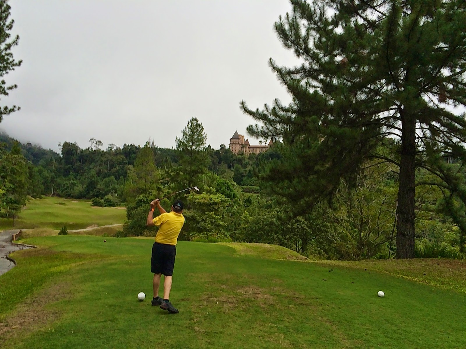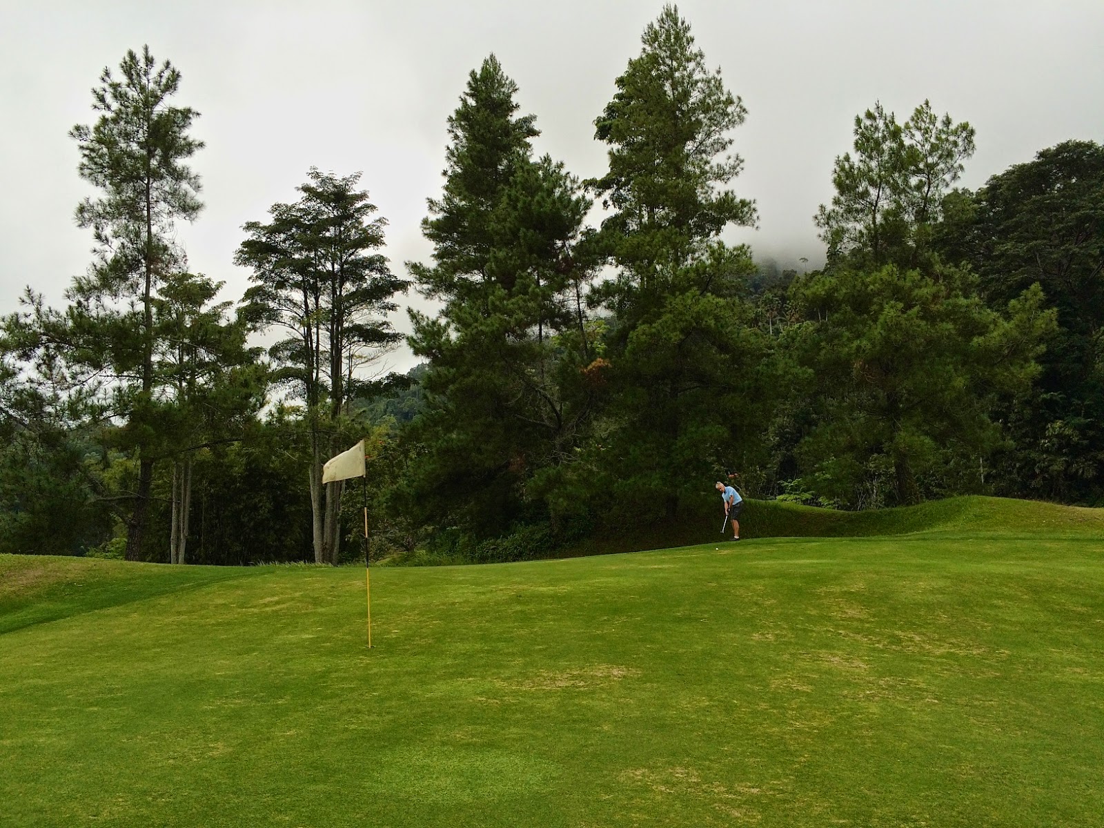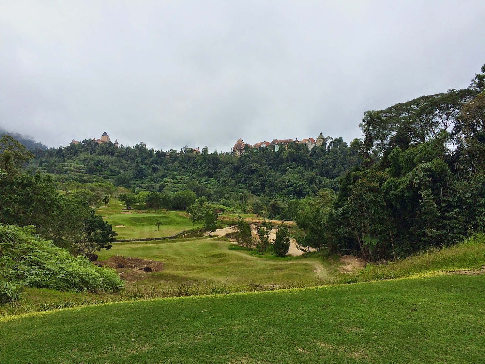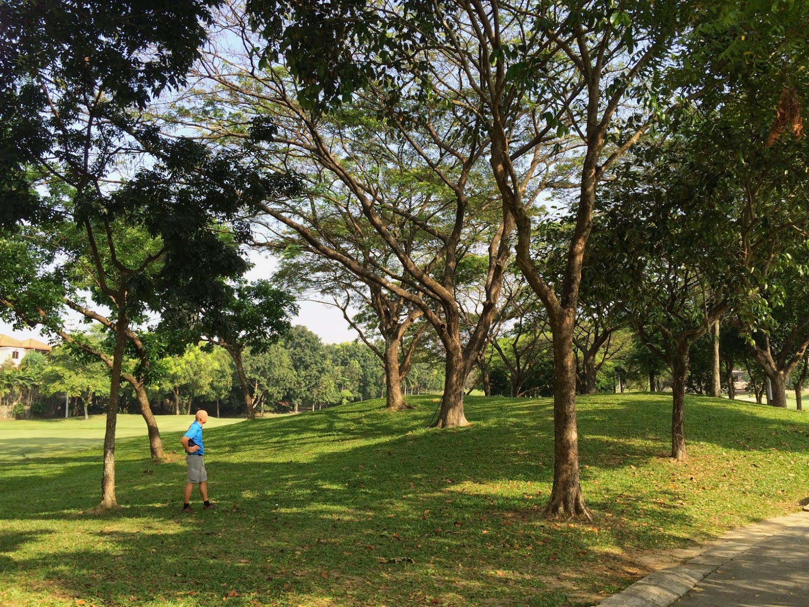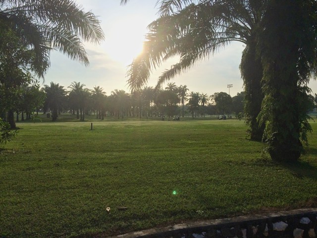 We all got off on 2 separate tee boxes at just before 8:00am and the first 9 holes were relatively cool, but got progressively hotter as the morning went on. The course was badly cut up by wild boars and the green surrounds were in pretty bad shape as were the bunkers. You really had to keep on the fairway as there was no relief by slicing or drawing onto other fairways – each hole was individually carved through the palm oil plantations so once of the fairway your ball was well and truly gone.