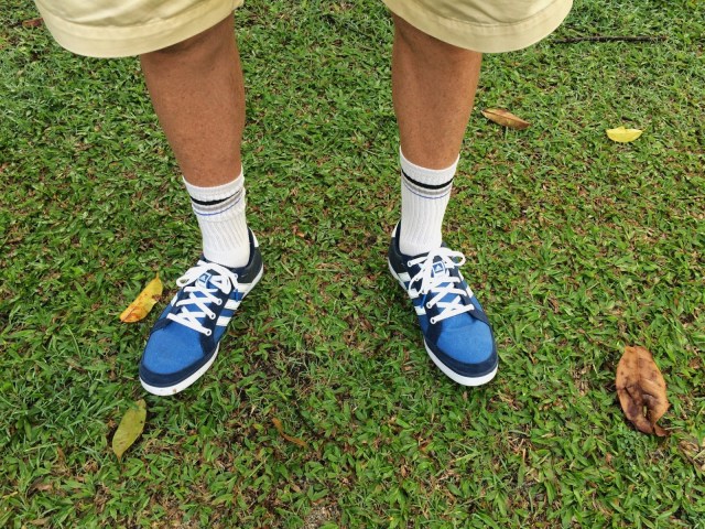 Andrew Robinson turned up with new golf shoes today …. well at least we think they were golf shoes ….. but looked suspiciously like some semi-casual tennis shoes. Anyway we will be carrying out a time lapse photo project over the next year and capturing the gradual degradation of these new shoes as Andrew continues to wear them every week …. with his usual attention to cleaning his golf shoes it probably won’t be long till we see some interesting changes.