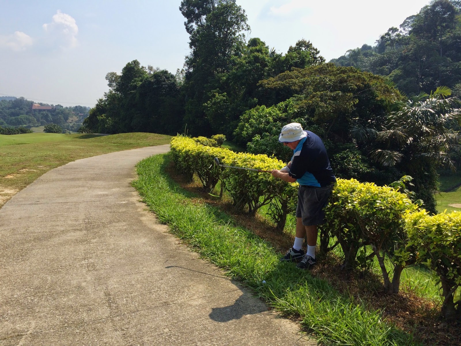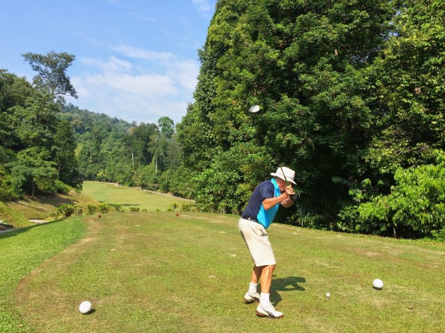We all remember Ayer Keroh from last year …. long, difficult, and very hot. It was no different this year and this course taxed most of the group. The course was in good condition but there were many long holes with the last hole being a monster 569m par 5 …… just for the record I hit 3 drivers, a 60 deg wedge to the edge of the green and a putter to get my much appreciated par. Martin Walsh birdied this hole so deservedly got the last birdie prize.