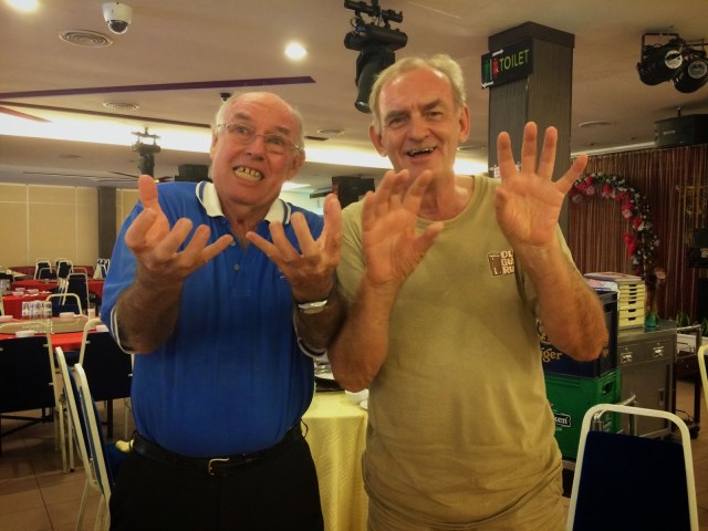 For the last evening the group had a good meal out at the Bistro on Jonkers Street, Malacca. After a failed attempt to order a set Nonya meal for 12 we eventually all ordered individual meals which were surprisingly very good. There was some significant amounts of wine and beer drunk which amounted to a substantial bill. At one point the waitress told me the bill had been paid by one of our party and all indications were that it was Martin Walsh. However we found out that she was mistaken …. Martin had only asked the waitress where the nearest ATM machine was and certainly had no intention of picking up the bill for the whole group. As he later said “I might be Irish but I’m not &%$#@# stupid!”.