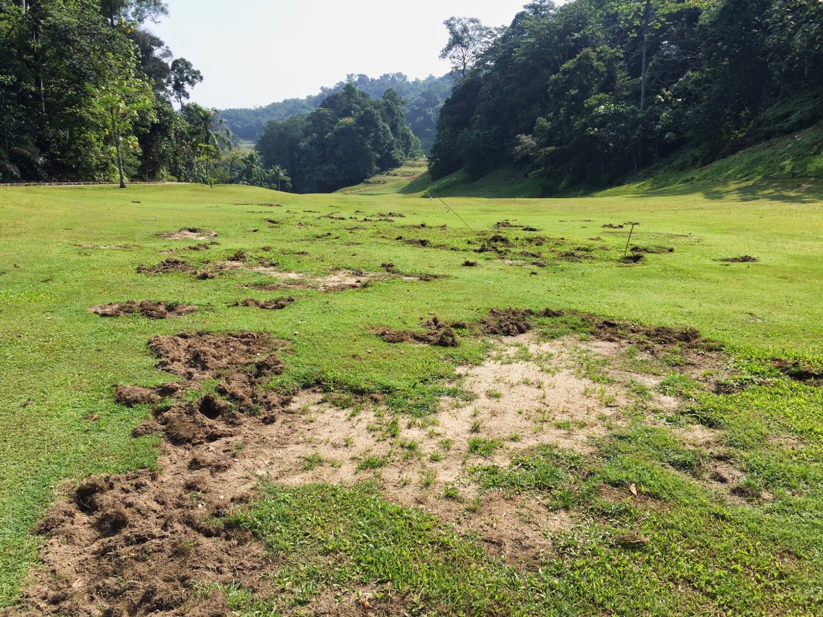 Great turnout today with 24 players (6 full flights) at Bukit Unggul. The course has been worked on over the last few months and the greens are now good again, although unfortunately had just been sanded making it a little bit more unpredictable. The fairways were generally ok although wild boar action was evident on many of their favourite spots. The bunkers however need some serious attention and are still the same as before – ragged around the edges and with drainage problems. Thye have been making some efforts to tidy up the course and there was a fair bit of tree felling ongoing.