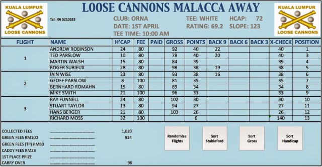 Loose Cannons Away – Malacca – 31st March to 2nd April 2015