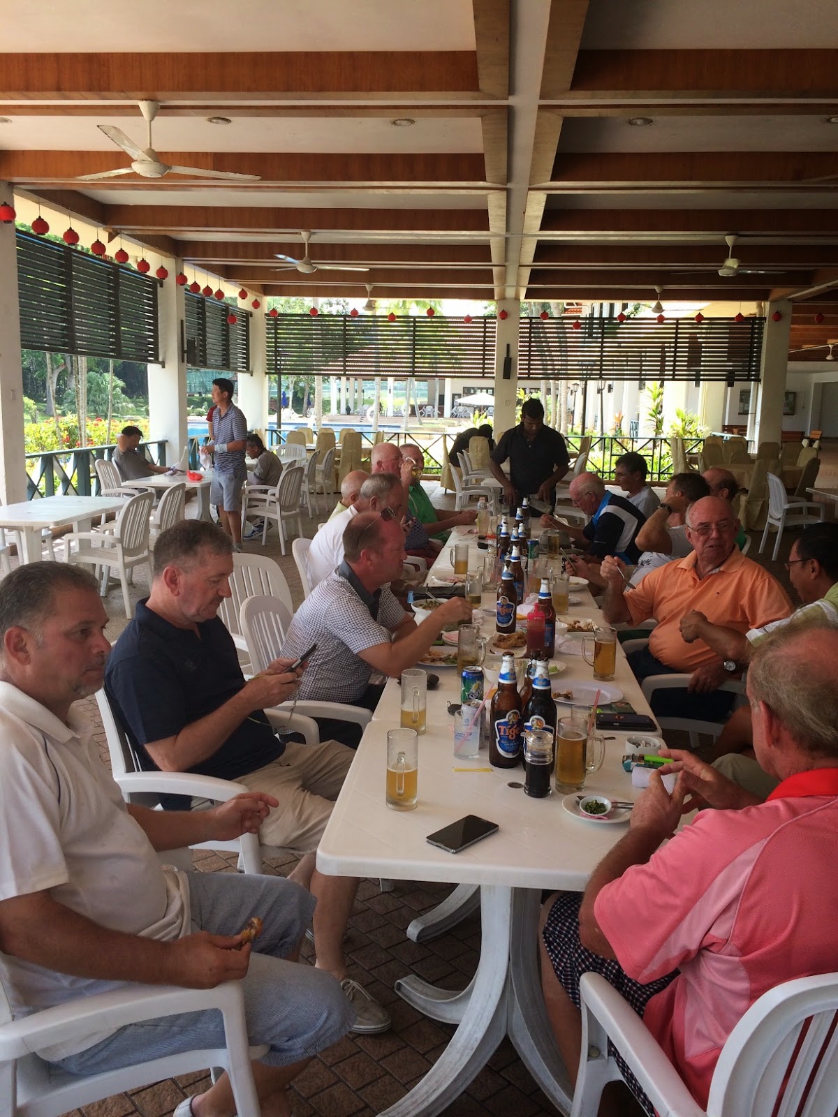 We finished by around 2pm and then had lunch and drinks on the patio with the prize giving. An incredible storm then rolled in delaying our departure from the club but allowing us to take on some more beer before heading into Malacca to checkin to the hotel.