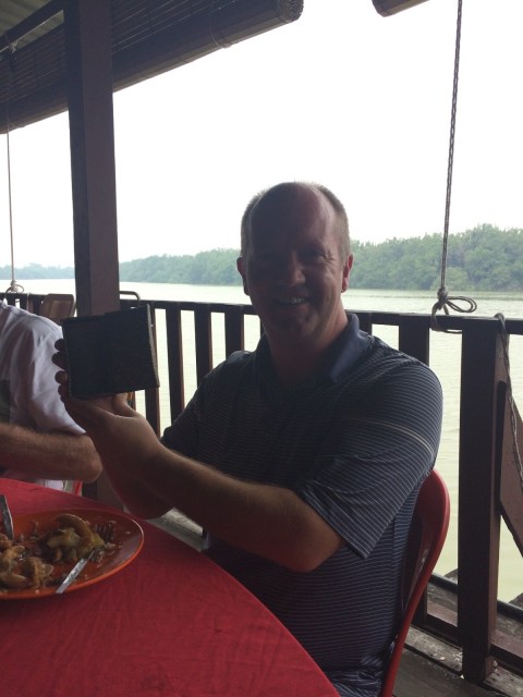 We had lunch and prize giving at the seafood restaurant back along the road from the club next to the river. Paul Geddes was given his trophy which he won back in June but Andrew Chez, our winner of the day, unfortunately couldn’t join us for lunch – his trophy will be passed on to him but the winning RM50 was promptly put back into the coffers by Moneybags, Iain Wise and put towards the lunch.