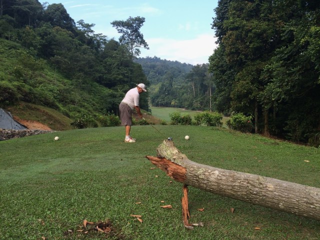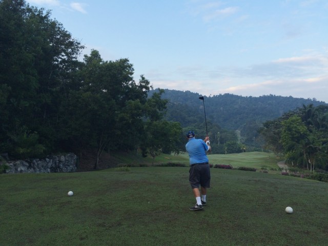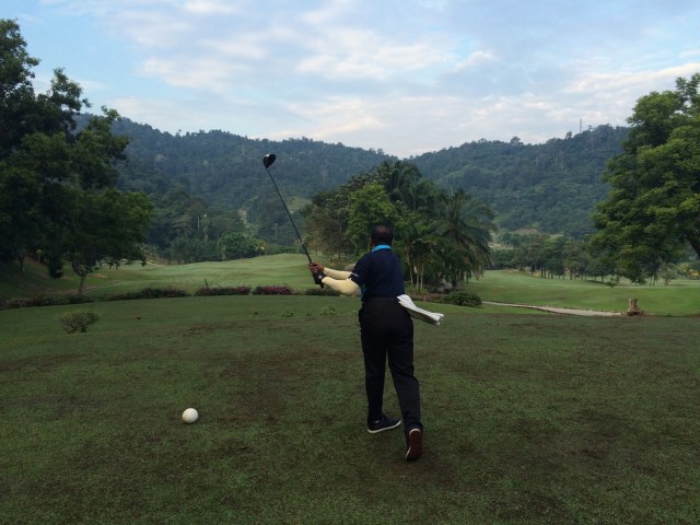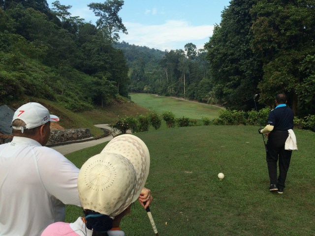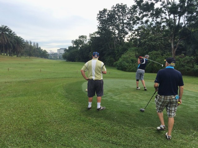 It was quite busy at Danau this morning but after an efficient and problem free check in we all teed off at around 8:10 to 8:30 from the 1st 9. The first 3 holes at this course are very testing and the tough nature of this course was certainly obvious in the scores posted. Conditions were good, the weather relatively cool and the course was in good condition. Greens were very tricky though especially with the slopes and quite fast speed – on one green all 4 of us putted off the green! This is a relatively cheap course as well making it quite an economical outing.