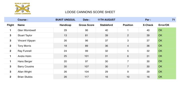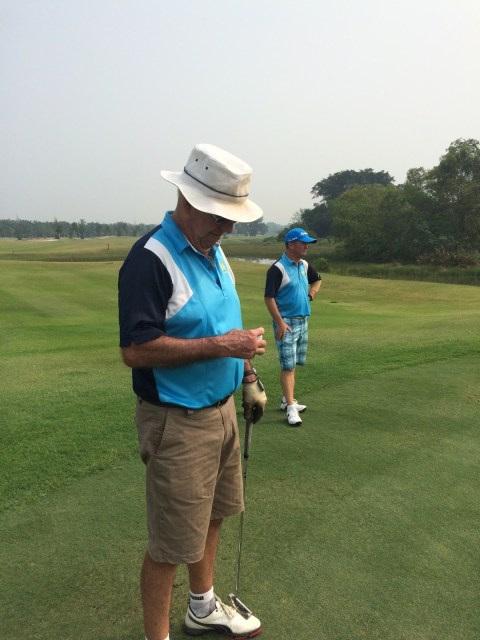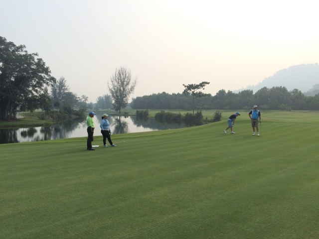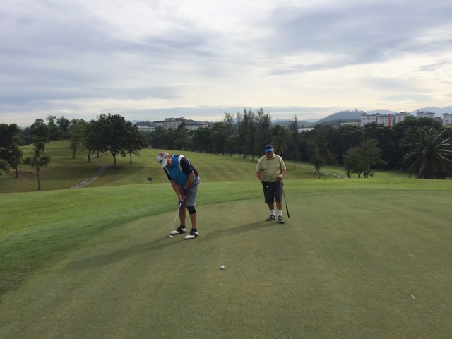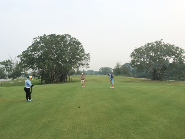 There were only 10 of us today at Bukit Unggul. After a short wait to start as they had all flights starting on Hole No 10 today we were soon underway and were not duly held up after this. Weather was great and the course was in good shape even with recently sanded greens. After the game we took lunch at the clubhouse and again sadly let down by the quality of the food and the slow and poor service …… some things never change.