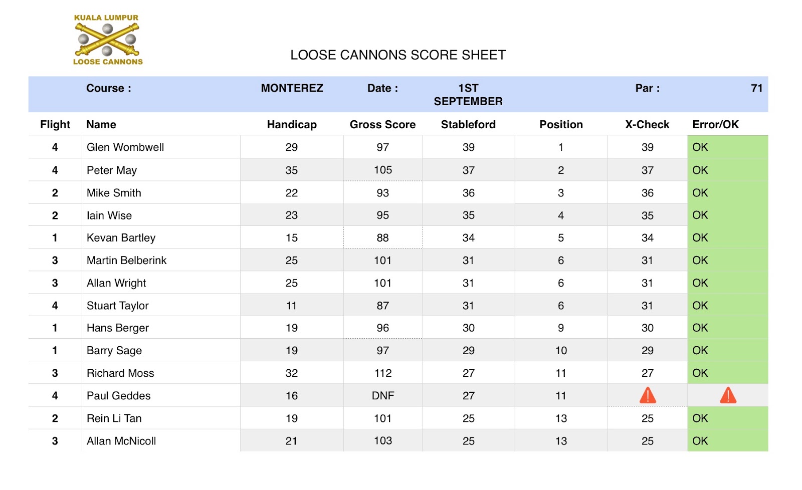 The winner today was Iain Wise (continuing his good form of late) with 40 points on countback from Brian Stubbs also on 40 points. Best gross was Stuart Taylor with 83. Full results below :