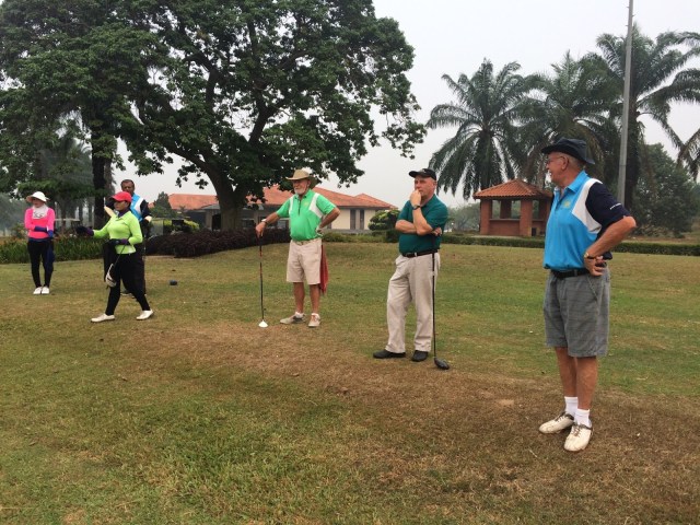 3 flights today at Bangi under fairly good conditions with only a minor haze. Course was a little wet from all the heavy rain the previous day. Greens were in good condition and the 3 flights all got round in good time and back to the clubhouse by 12:30. We had lunch after the game at the excellent Restoran East of Highway.
