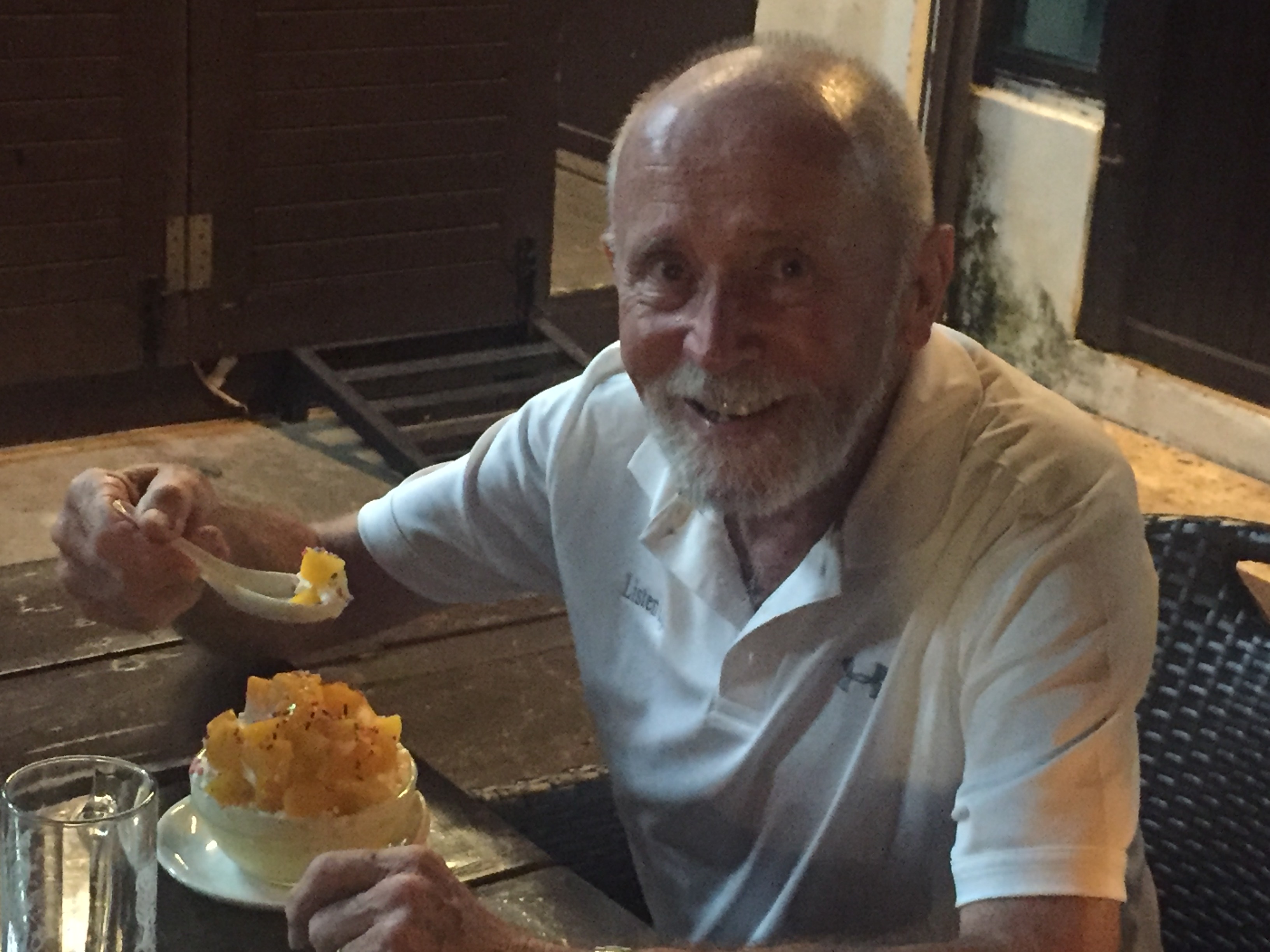 Mike enjoying his fruit dessert