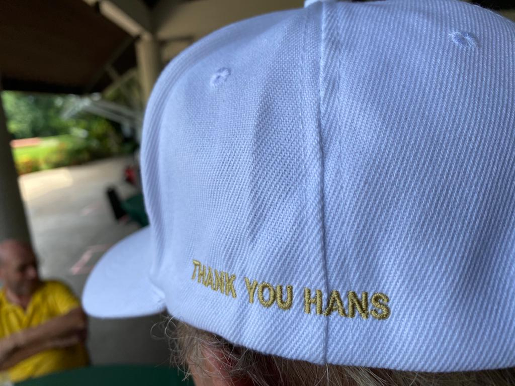 THE MIKE struck again……………..81/40, magic sticks it must be. Shared 2nd Siggy and Ricardo with 38 points and 3rd Andrew with 37 points. See below all results The monthly battle is a close fight between Mike, Siggy and Ricardo. Many had to leave straight after the game so we had a small group for lunch this time. We still had a belated present for Andrew’s achievement and presented him a special “500 games” golf shirt. Also Hans got one more present to honor his convener ship; a LC cap with his name and service years on it.