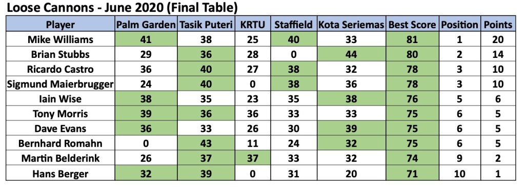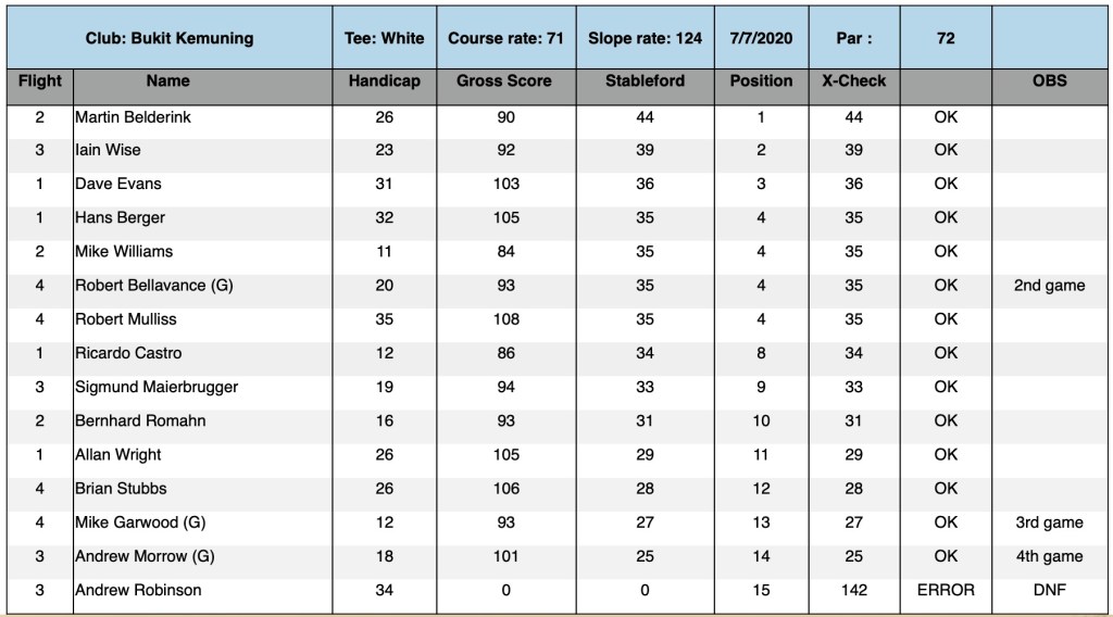 As a keen golfer Roger played with a number of local golfing groups. He was a regular attendee of the KLOGS golf society, first playing in September 2008 (guest of Andrew Barber) before becoming a member in January 2009. He will be remembered fondly as perhaps the calmest player of the society, with his ability to never get flustered, regardless of the outcome of a shot with a great sense of humour. He was also a winner on the 2018 away in Bangkok and recently served on the committee as ‘moneybags’. Roger also played a total of 63 games with the Loose Cannons golfing group who play every Tuesday. Roger was also an active member over the last few years with the FRID’ Eggs golfing group who play every Friday and played a total of 37 games. He also joined the group on our last away tour in August 2019 to Siem Reap, Cambodia.