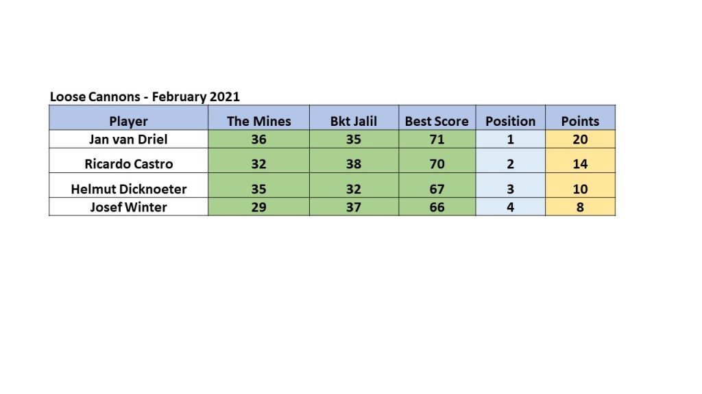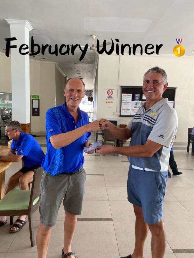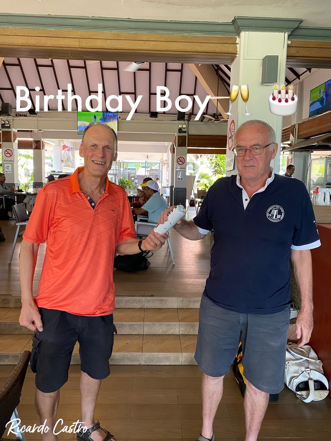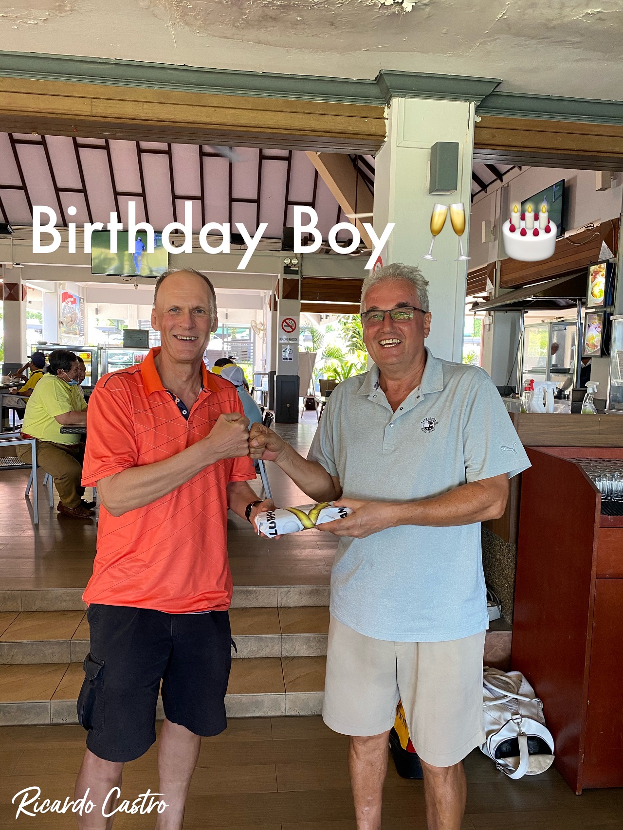2 other players with lowest gross (85); Ricardo and Bernhard. We all can picture Bernhard running around like a headless chicken, finding a ball which is not always his, hits it anyway…….. 2 strokes penalty……. “whas se f**k em ai doing” We got him a ball marker. Will he use it????Thank you all for the nice shirt and plate that you bought me as a goodbye present.