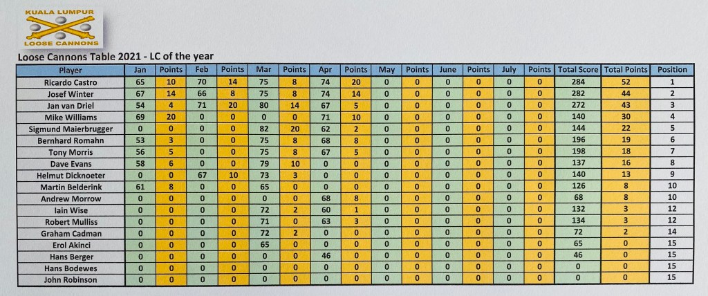Again a month without golf….. It is getting a bit boring isn’t it? From the earlier words of the PM it looked like a bit of light at the end of the tunnel when he said that fully vaccinated people MAY get some relief in sports etc. And that only in some parts of the country. Well, I am sure that Selangor and KL will be at the bottom of the list, looking at the number of infections here. I just cleaned up my clubs again, making sure that mould will not start to ruin my grips.