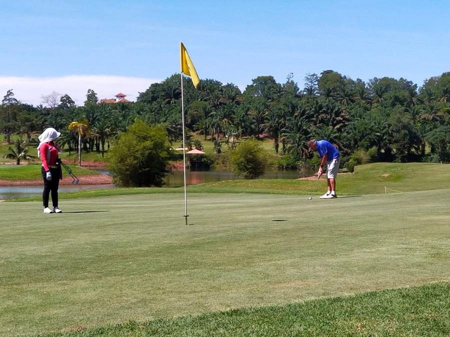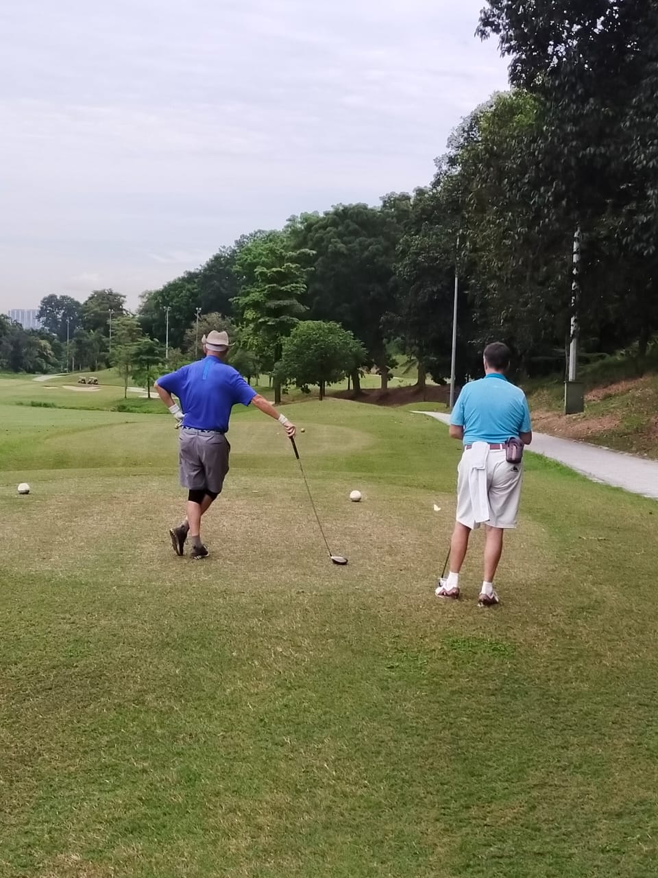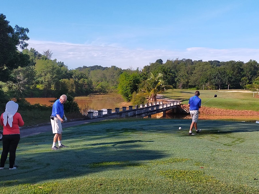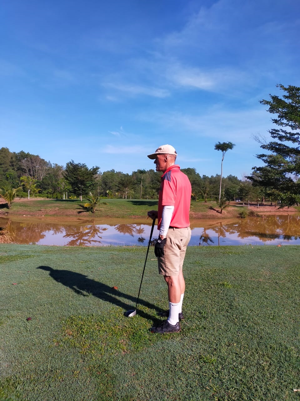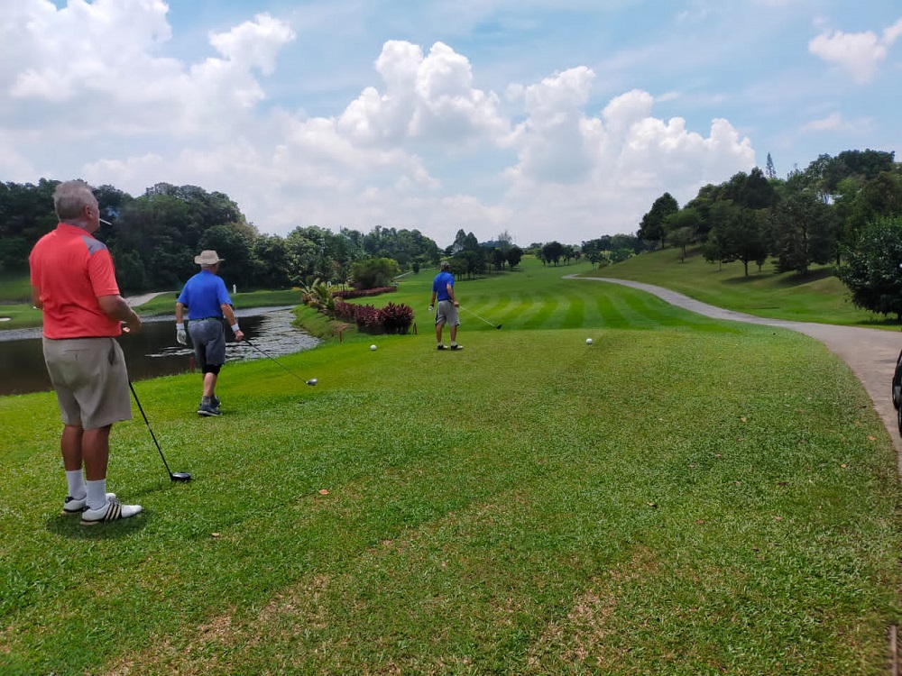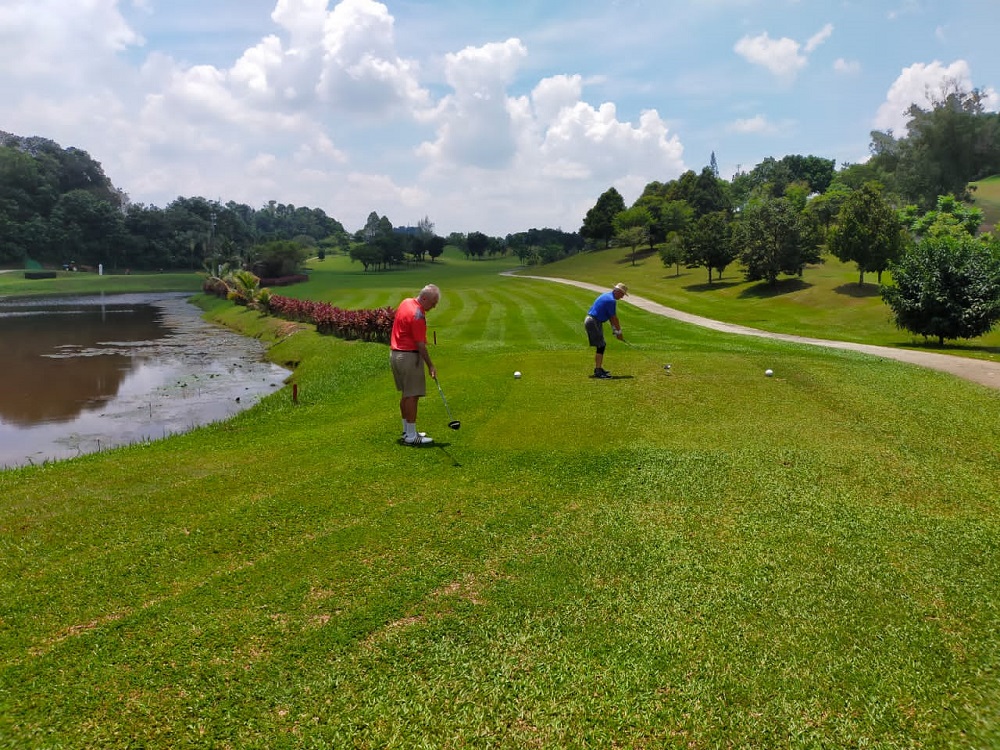 After a very long time, about 6 months, we teed off at Tasik Puteri again. And it was a joy to play. The weather was great, as can be seen from the pictures, and the course was in a good condition. Admittedly some parts were very wet, to the point that I lost a ball just in front of the green, plugged probably half a meter below the fairway.There have been a number of cows/buffalo’s on the course as some of the fairways, and greens, were damaged, but that was OK, as everybody had the same problem. The greens were a bit variable as far as speed is concerned, sometimes very slow and some of them good speed as expected. Again, as in the last weeks, the course was very quiet. Not all golfers have found the way back to the golf course again, it seems.Our regular restaurant was closed, only open for take away, and therefore we enjoyed lunch and beers at the club.