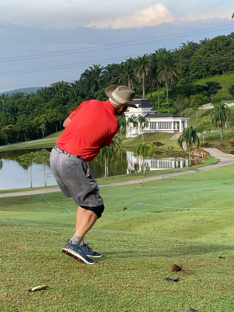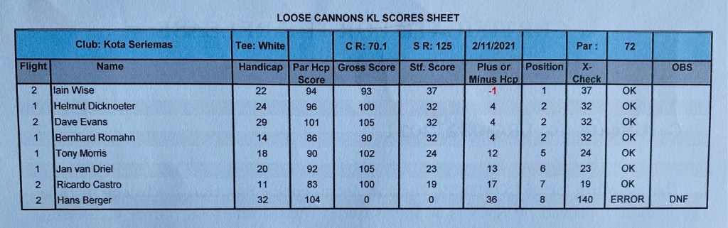And again a very good choice to play at Kota Seriemas. I was a bit afraid of the condition of the course after the prolonged and heavy rain the day before, but we were all pleasantly surprised. No real soggy places on the fairway, the greens were in very good condition, so a pleasure to go around the course. It is not a very easy one, we know this, but a good challenge keeps us on our toes during the morning. We had a good and relaxed start, not too busy during the first nine, and we got a slow flight before us on the second nine, but actually not too bad.