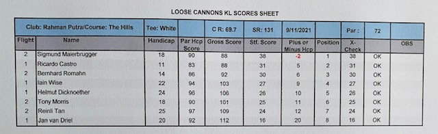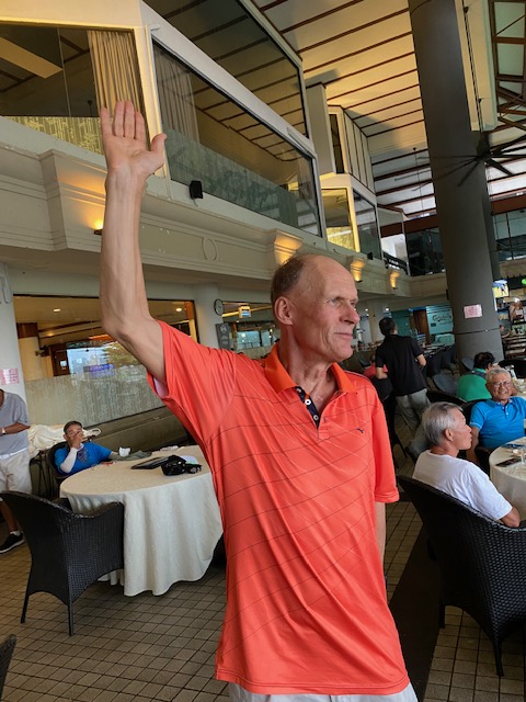 So we had a late lunch at the club, with several prices to give away. The winner of the day was Siggy with an excellent 38 points!! Well done. The second was Ricardo and the third was Bernhard. Ricardo and Siggy had the lowest gross score of 88 and Jan broke his own record to take 112 strokes over the 18 holes…..