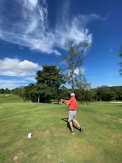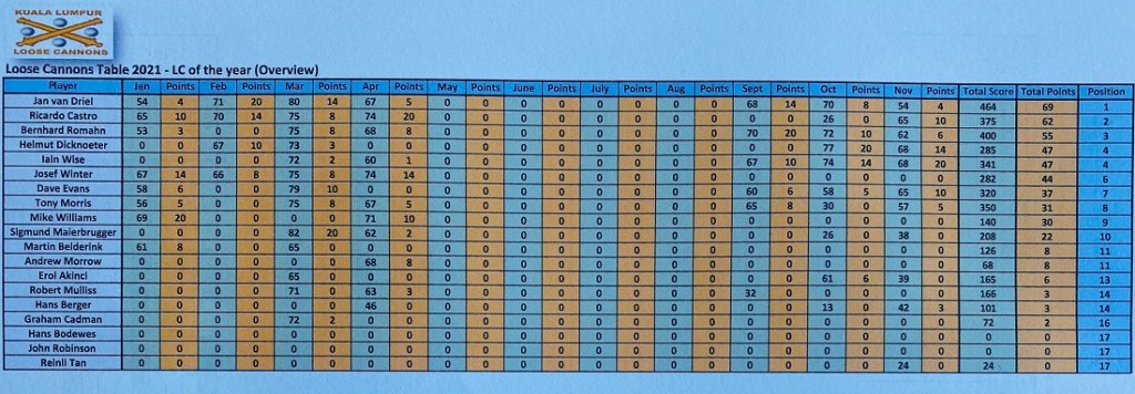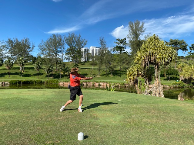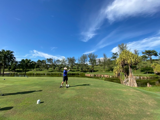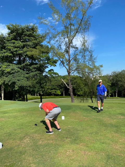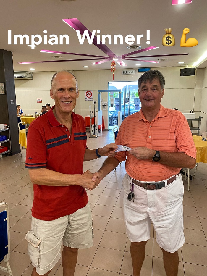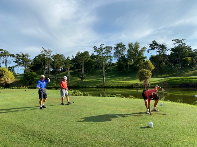 A very nice morning we had at Impian. Contrary to our experiences, the course was not wet, in spite of the rain the last few days, and it was not busy at all! We teed off at hole 10, about 10 minutes ahead of our planned tee-off time, and we finished well before noon with our 18 holes. The course was in very good condition, the greens on the first nine, just sanded and still a bit wet, were slow. That was compensated on the back nine with fast greens. It has to be said that Hans captured a number of those greens with fabulous putts from some 20 feet or so. The course is never easy, which was reflected in the scores. Hans and Jan shared third place with 28 points, Ricardo came in second with 30 points and Tony was the day winner with 32 points.