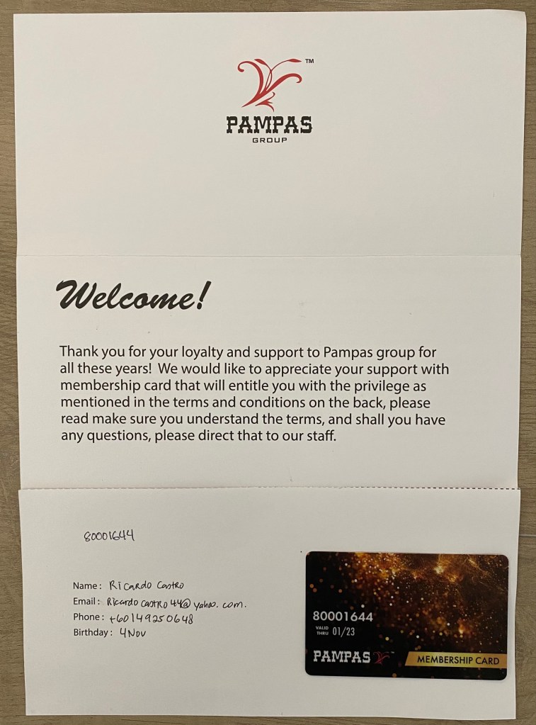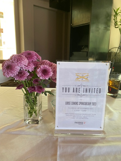 It’s with great pleasure we announce PAMPAS GROUP as the new Loose Cannons sponsor for the 2023 season, celebrating the special moment with a nice event at the flag outlet in Kuala Lumpur with the presence of 14 LC members, wearing the new LC shirt, who came to support the cause. Thank you very much for your support it was nice to see 3 new members supporting our event which shows even though they are new but they already feel the Loose Cannons vibe. On behalf of the Loose Cannons Society, I want to say to the owner of Pampa’s group Mr. Kana Theva a big thank you to open this opportunity to us and also to Miss Maggie Kamto (Marketing Manager) for all the time and help in making this event became a reality. Ted Parslow and Diederek Brinkman were the lucky guys to get the two vouchers (food and wine) and hope they can enjoy food and a good selection of wines at Pampas. All the active members were presented with a membership card with a 15% discount on food and wines from now on until the end of 2023 at any Pampas restaurants. Also, Pampas offered 12 vouchers to cover prizes and lucky draws during the 2023 season including away tours. We are expecting your support every week, every year, and together we will keep improving and growing Loose Cannons, enjoying the sport we love. Thank you again.