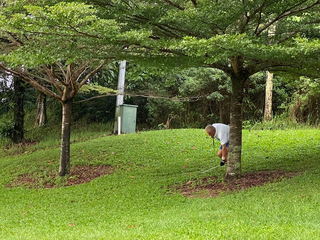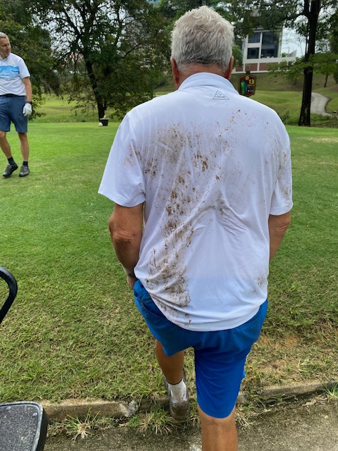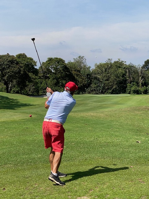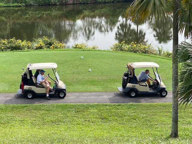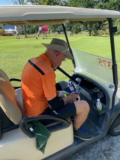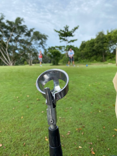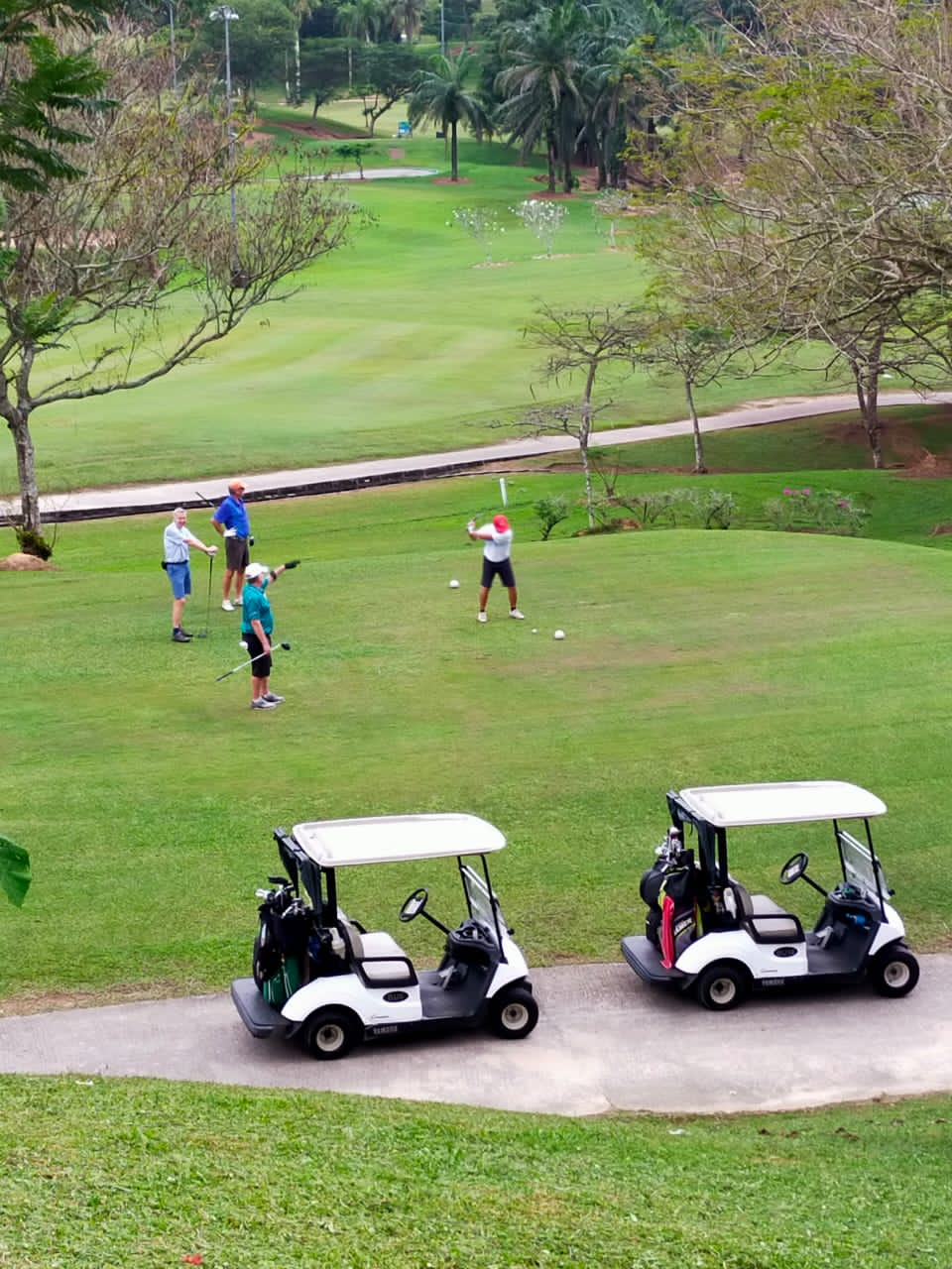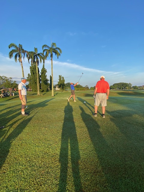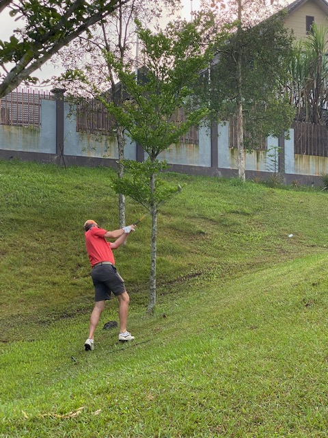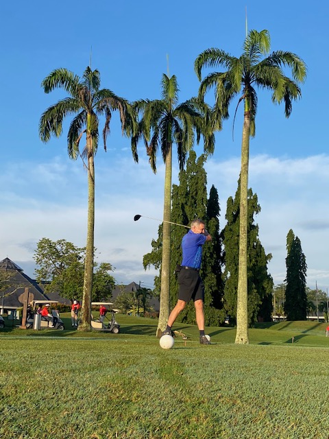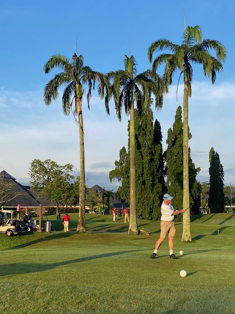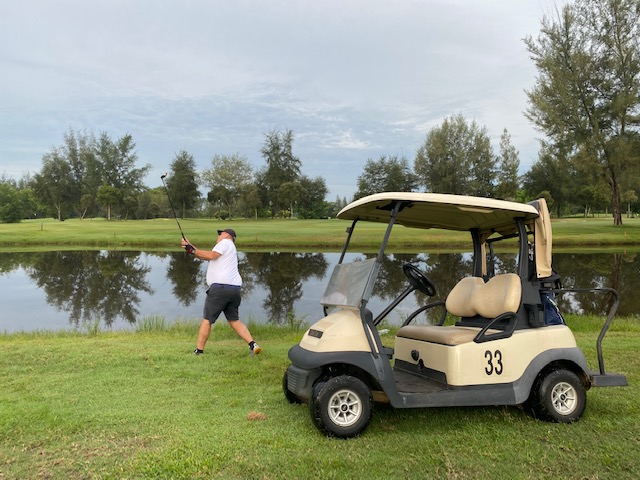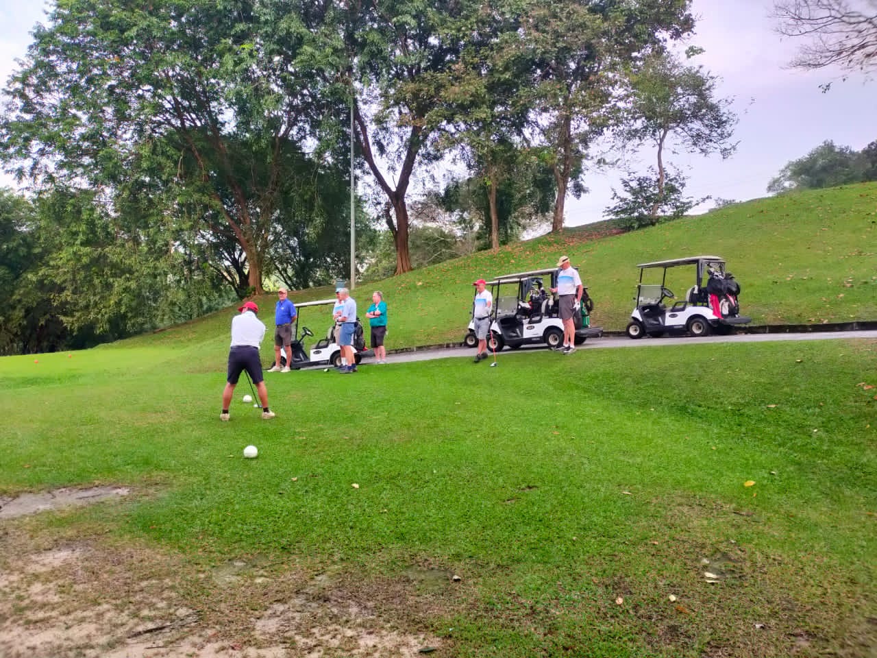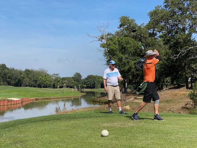 We teed off with four flights, two three balls, and two full flights. We missed Helmut because he got just outside the island with problems with his car and he had to wait almost two hours before his car could get towed away. Helmut, next time better, and maybe you should think about another car…..?
