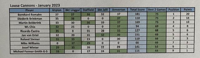 During our lunch, we also celebrated the Loose Cannon Of The Year 2022. This is based on the monthly performances during the year, where points are given for places one to ten. You can all follow this in much more detail on the blog.