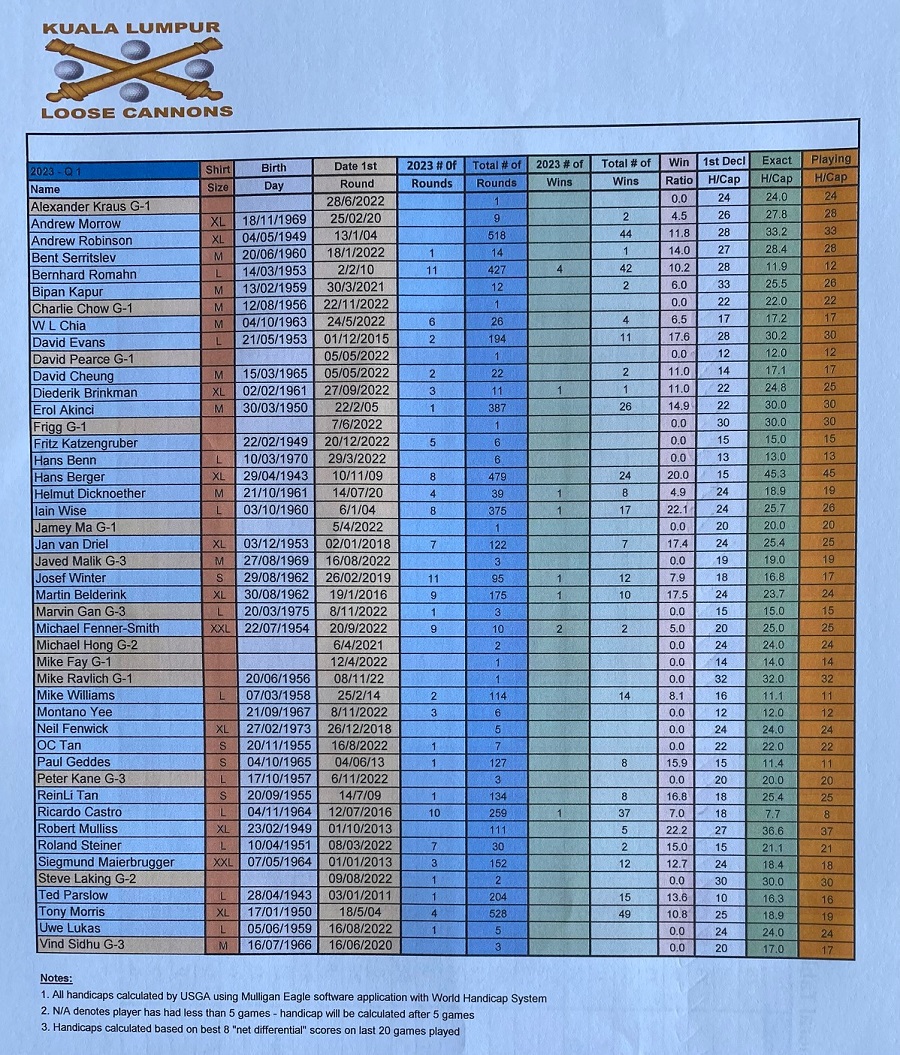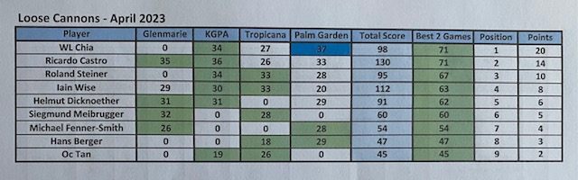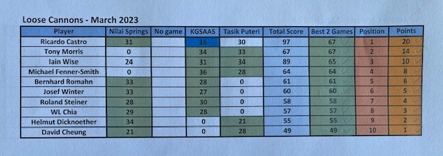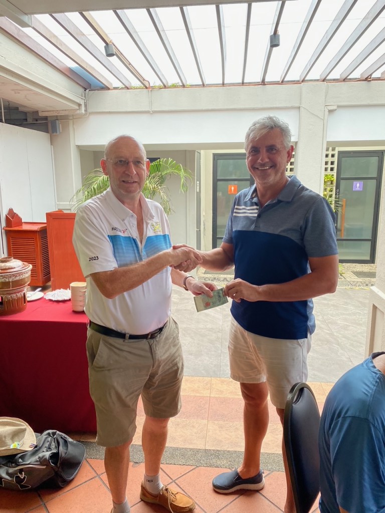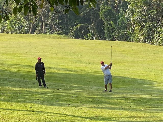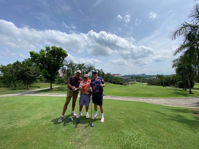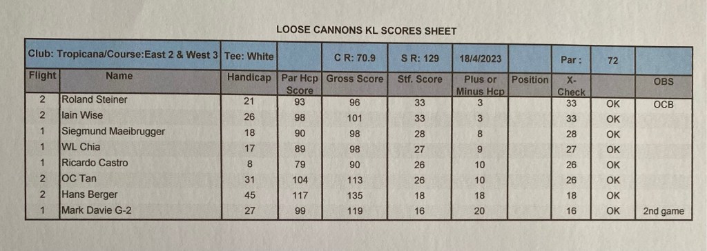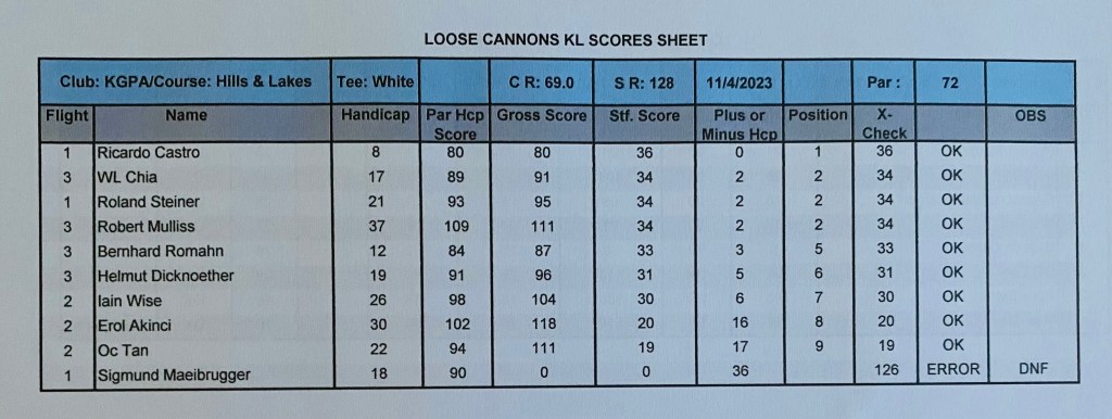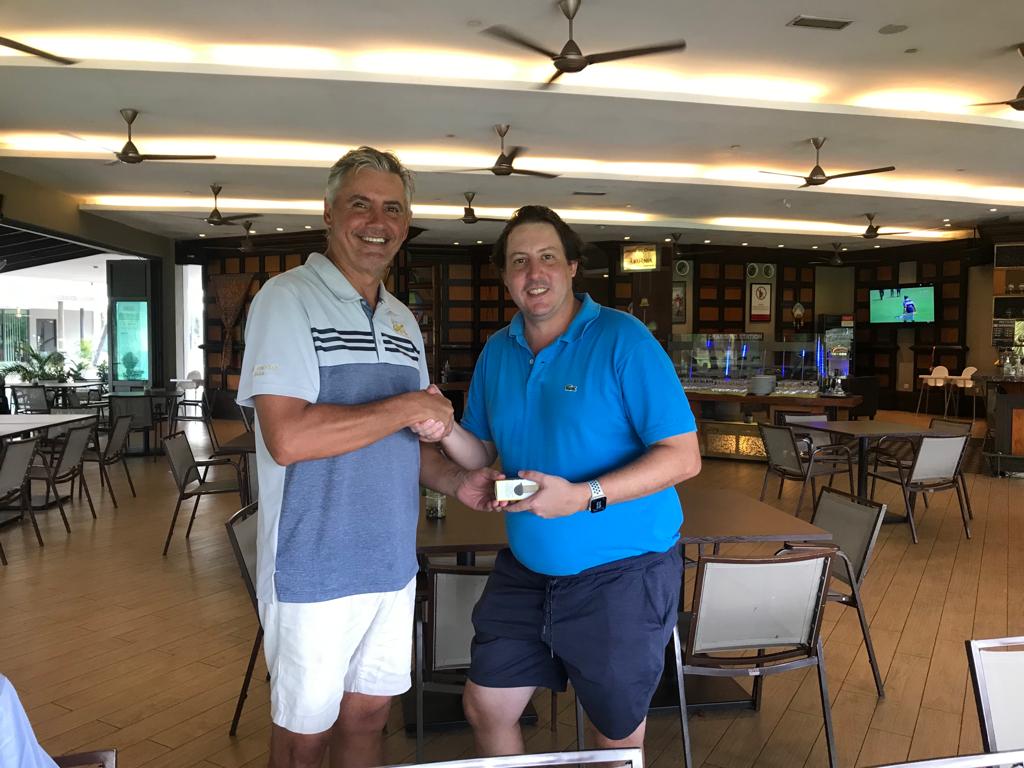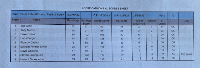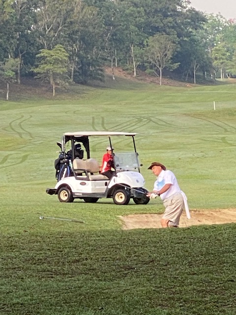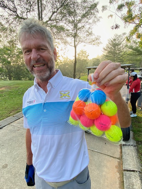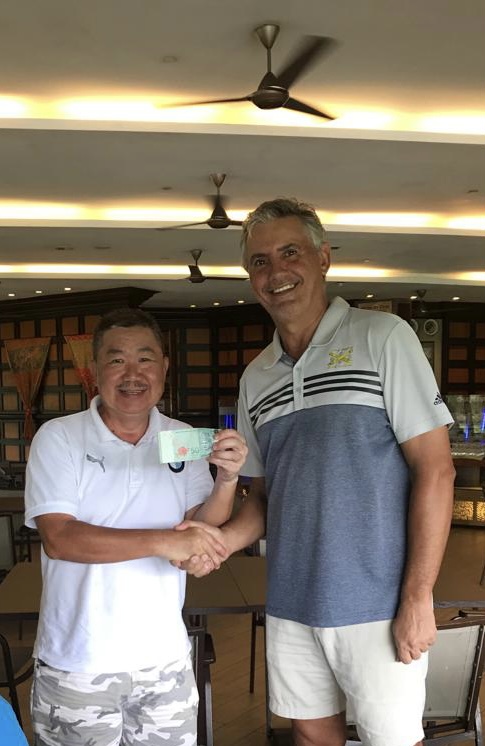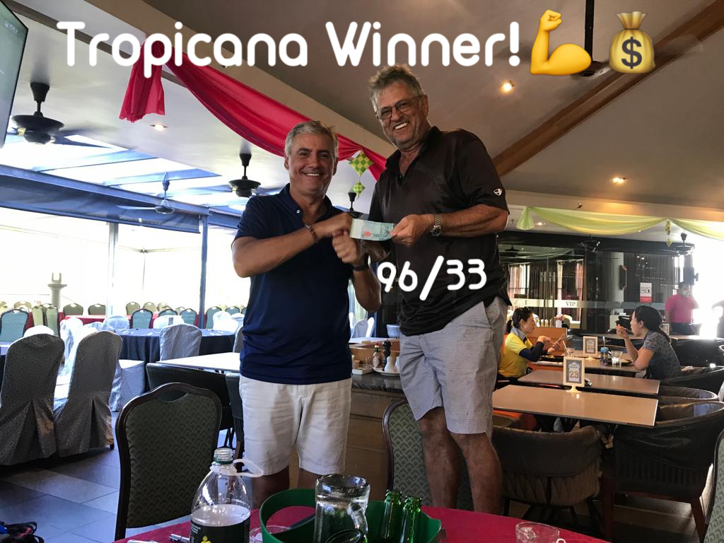 The last Ramadan game was held at Palm Garden, with 3 flights sharp at 8:00am, with the first flight teeing off at hole # 1 and flights two and three at hole # 10 and we all finished around noon time. The course is always in good shape with tricky greens, some of them fast some quite slow, which cost extra stocks to everyone. The winner today was WL Chia with a good 89 for 37 points, followed by our guest Charlie Chow who played his third game with a reasonable 94 for 35 points, and in third place Ricardo Castro and David Cheung booth with 33 points. With these results the monthly champion is WL Chia with 71 points, the same points as Ricardo Castro but Chia won, and followed the first criteria, from the two best games he had the highest score (37), so congratulations to Chia, well done. Joe Huggies (guest of Michael Fenner) played his first game with us, and got a nice LC sleeve of balls, compensating for his loss on hole 12 as a welcome gift and we are looking forward to seeing him again. Hans Berger requested lunch at the club and kindly sponsored 100% of the bill celebrating his birthday with us in advance we had a few jugs of beer and nice food, so Hans once more thank you for your support and offer, and HAPPY BIRTHDAY. The next game will be at Seri Selangor.